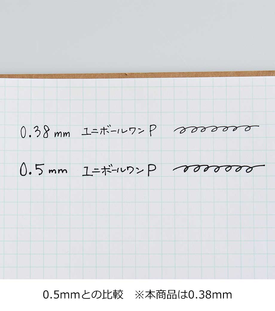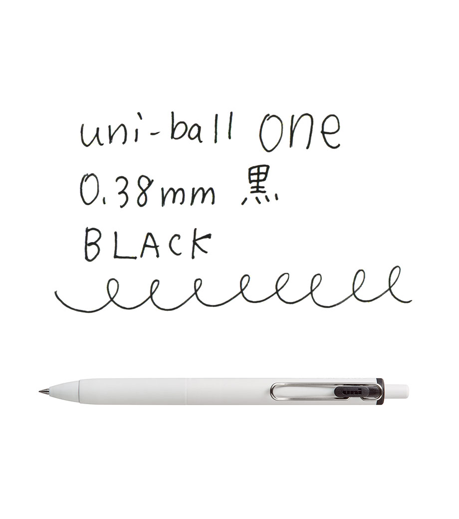 三菱鉛筆 ユニボール ワン 0.38mmは一般的なゲルインクボールペンと比べてインクがより濃く、より鮮やかに発色するボールペン。手帳やノートにたっぷり書き込める0.38mmボール径です。