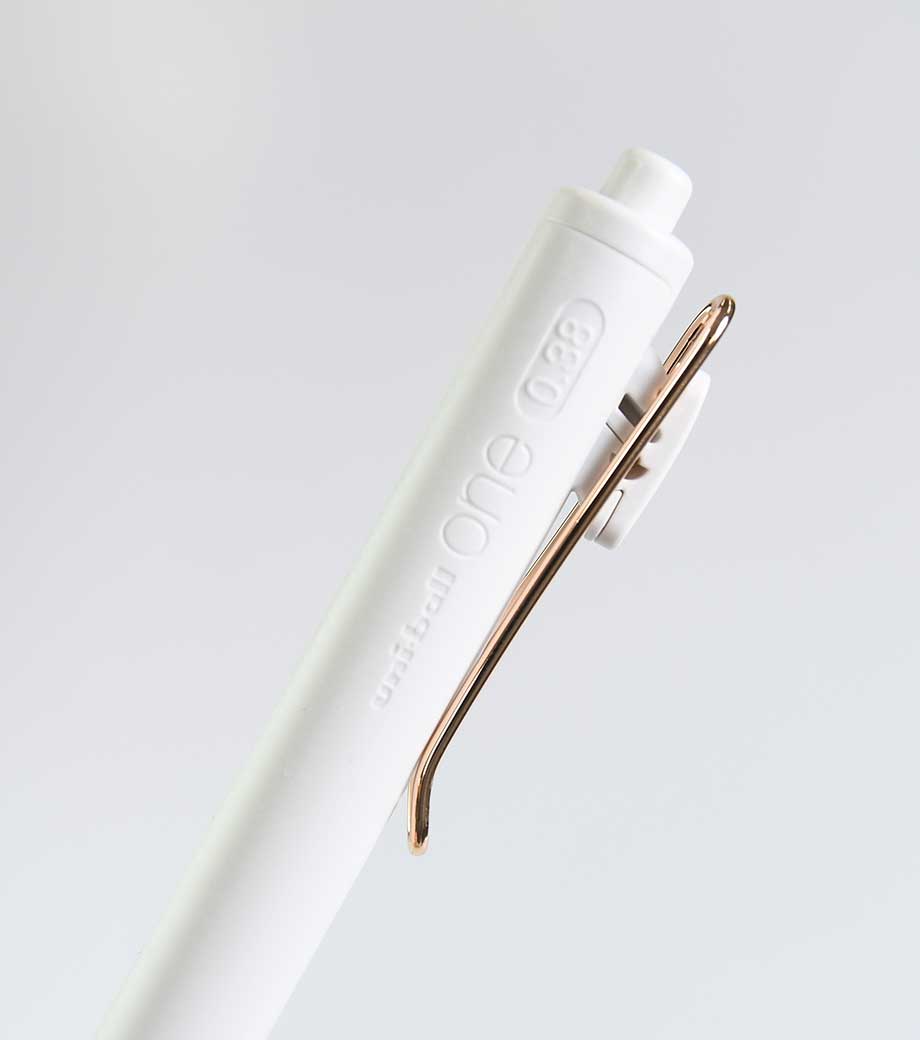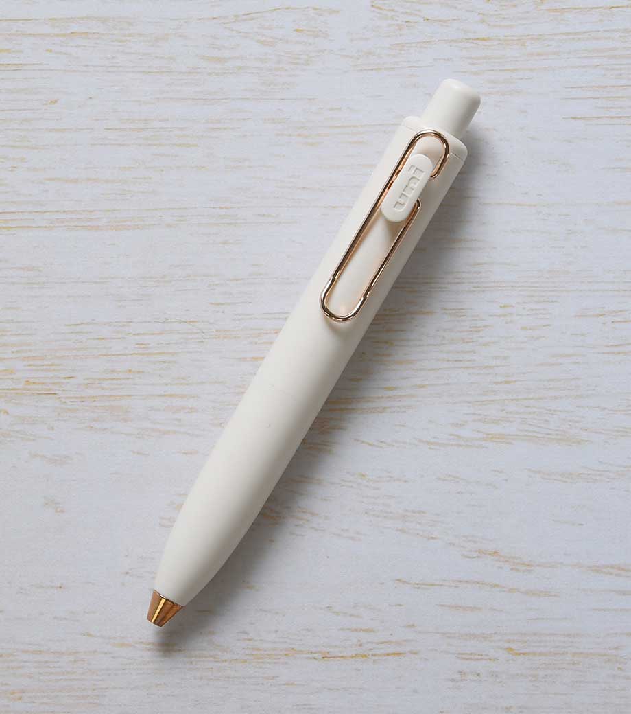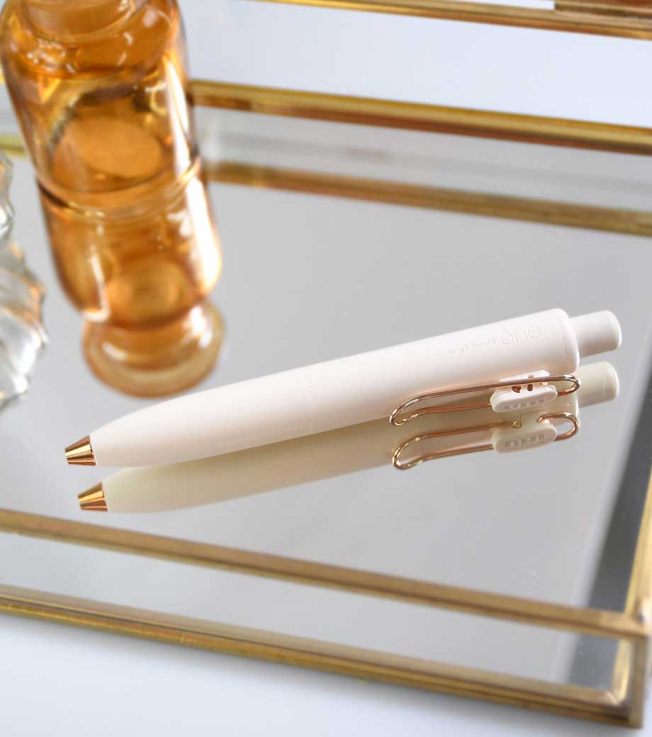 シンプルで無駄のないデザインで人気の三菱鉛筆ユニボールワンシリーズ。上品な輝きを放つローズゴールドバージョンが新たに仲間入りしました。はっきり書ける0.5mmで、大事な書類にも安心です。