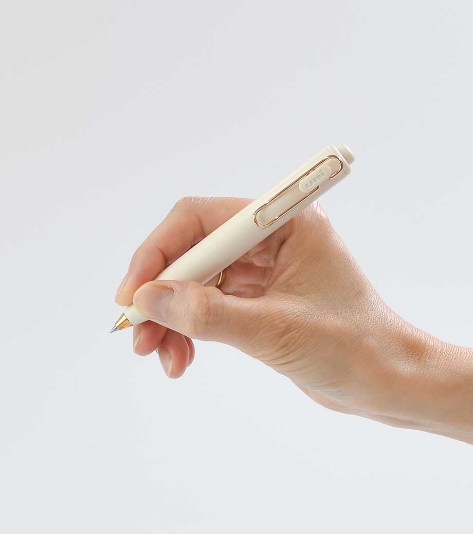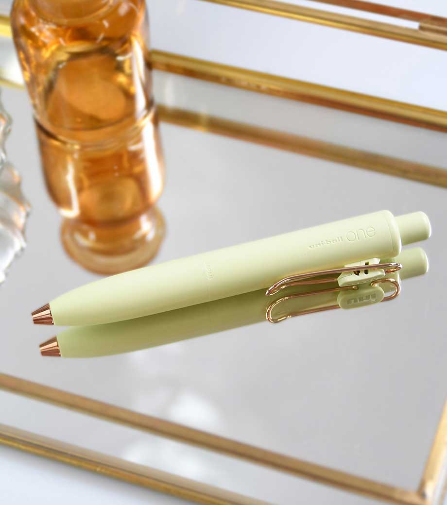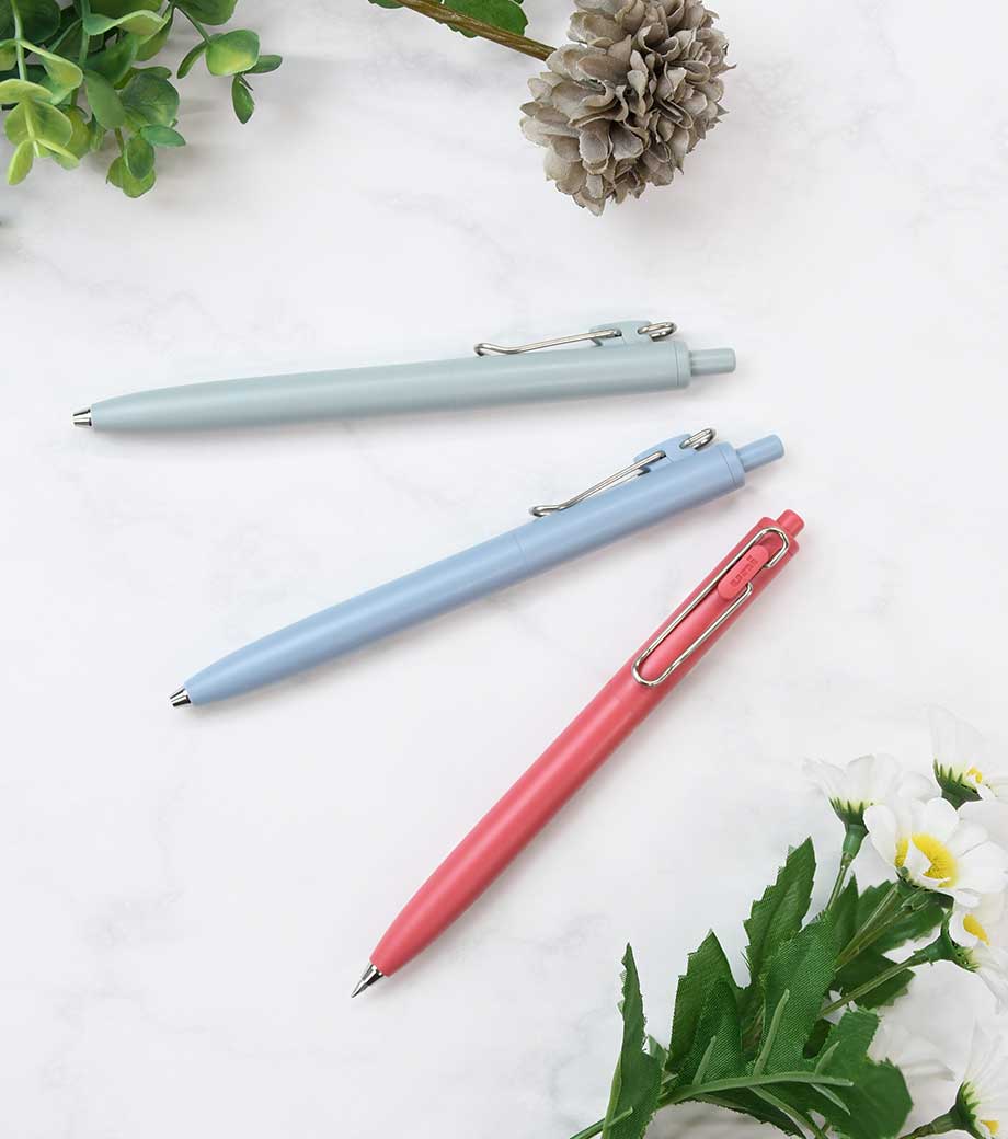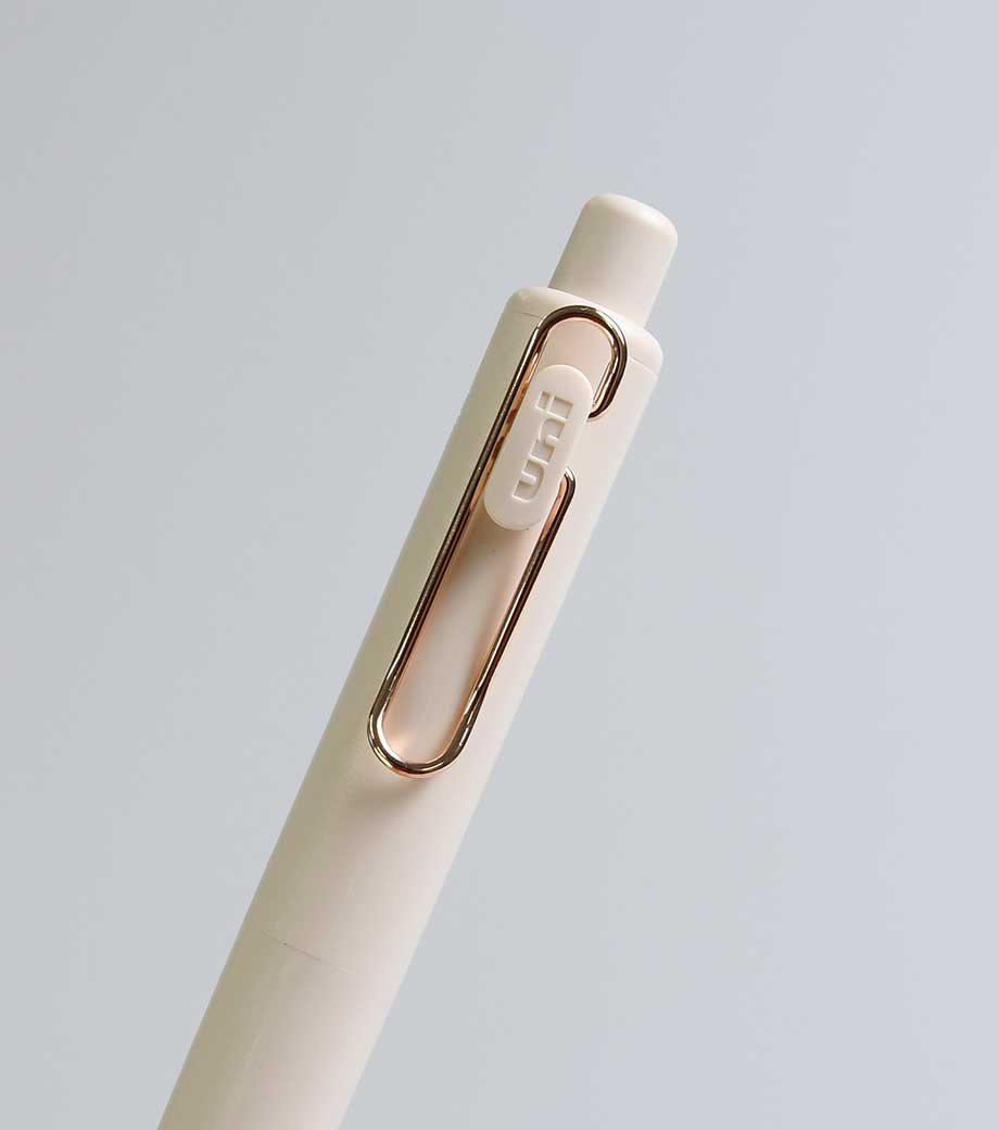 シンプルで無駄のないデザインで人気の三菱鉛筆ユニボールワンシリーズ。上品な輝きを放つローズゴールドバージョンが新たに仲間入りしました。はっきり書ける0.5mmで、大事な書類にも安心です。