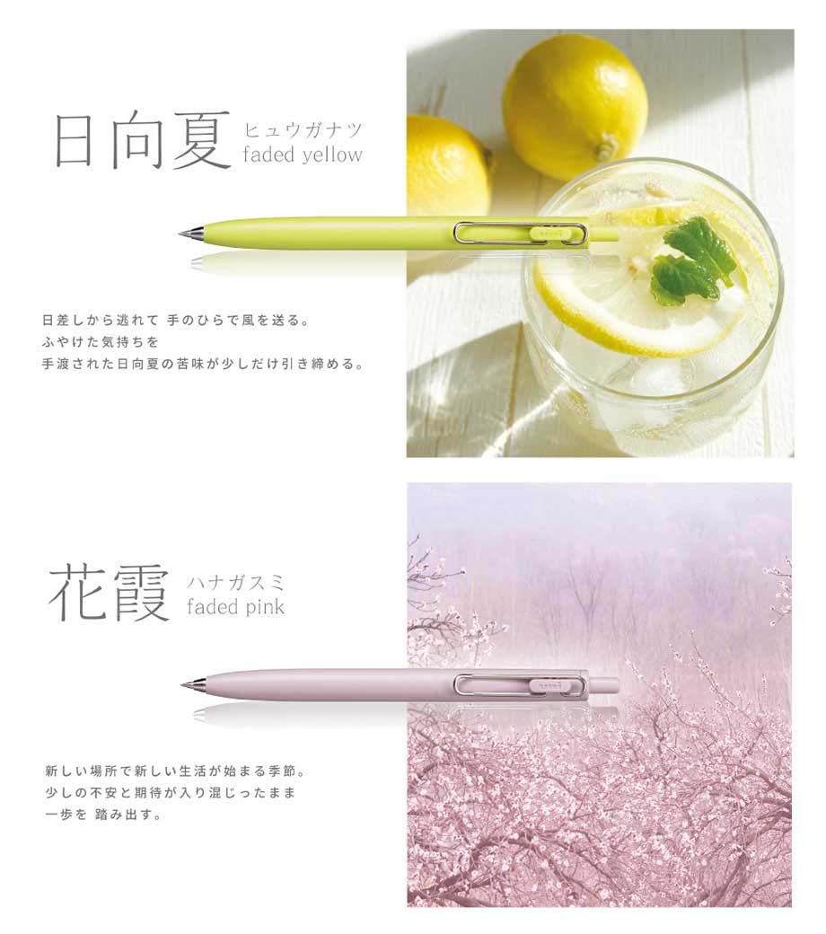 三菱鉛筆 ユニボール ワン F 0.5mmは、日常の中の景色を表現したくすみカラーが特徴。独特で趣のある色名がおしゃれで、トレンド感満載の商品です。凹凸を限りなく減らした流線型のデザインは、洗練された印象を与えてくれます。