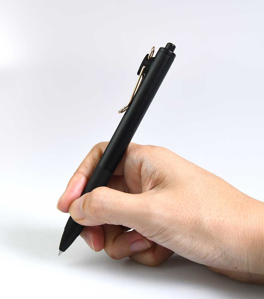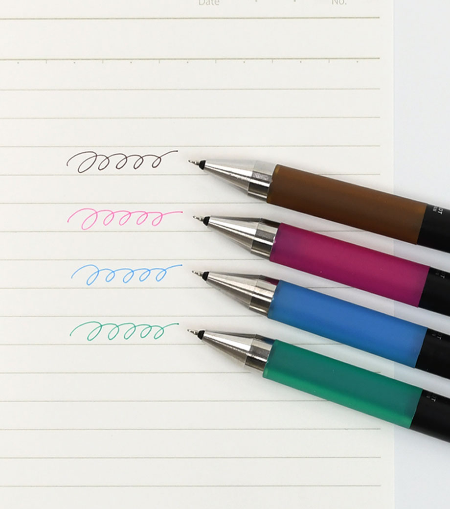 ノック式なので、もたつきなく書き出せるのもスマート。スリム&ライトボディで長時間の筆記でも疲れにくく、ずっと書いていたくなるような、ボールペンです。