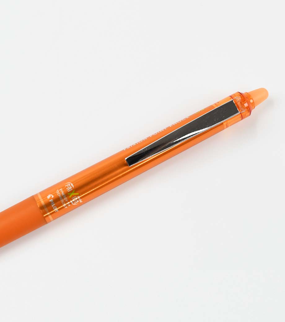 書いて消してまた書ける、世界中で大ヒットのフリクションのノック式タイプです。ペン先は0.7mmでしっかりした線を描きたい方におすすめ。クリップスライドノック式を採用し、ノック面が大きくノックしやすくなっています。ノックすると小窓からインク色がのぞくので、ONとOFFがわかりやすくなっています。
