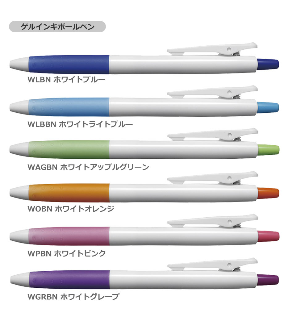 白軸とクリップ部に印刷が可能。ばらまきノベルティとしても定番のボールペン。カラフルなグリップ色でコーポレートカラーに合わせたオリジナルグッズが作れます。