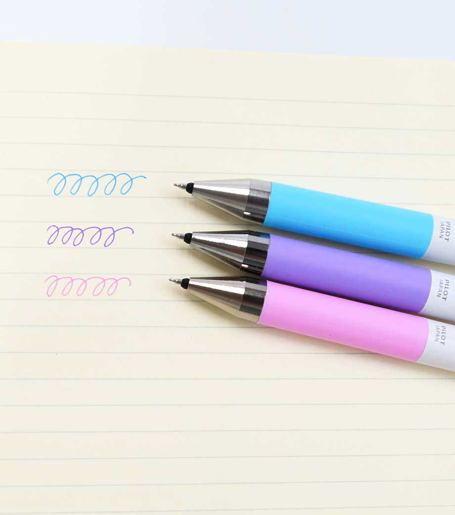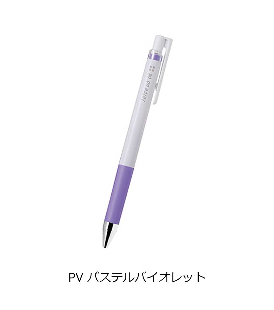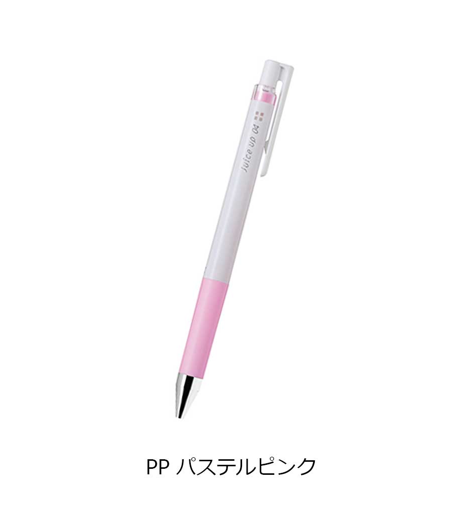パイロット ジュースアップ04(超極細) パステルカラーは、鮮やかな発色と滑らかな書き心地が特徴のゲルインキボールペン。ペン先は0.4mmと超極細ながら細字をスムーズに書けるので、ノートや書類の行間への書き込みに最適。色数が多く、要点を色分けして記入する時にも大変便利です。インク色とグリップカラーが同色なので、使いたい色が一目瞭然!黒地などの濃い色の紙にも書けるので、アルバムや店頭POPなどの書き込みに使うと素敵です。