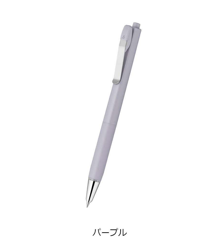 挟みやすい金属製バインダークリップのペン先0.5mm、ジェルインクボールペンです。ノックする時に指が当たらないよう工夫され、会議や商談の場でも使いやすい静かなノック音です。耐久性にも優れさらさらと書きやすく、ビンテージカラーは万年筆のインクのように落ち着いたシックな色合いです。