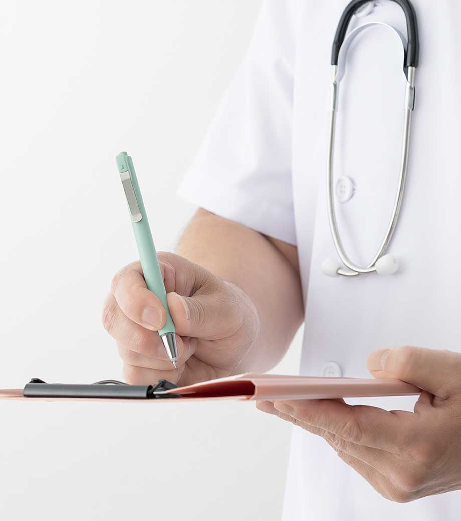 持つ人の印象がよくなる上質感があるカラー5色展開。1色ロゴ印刷でオリジナルボールペンが作れます。医療関係のノベルティなどにおススメです。