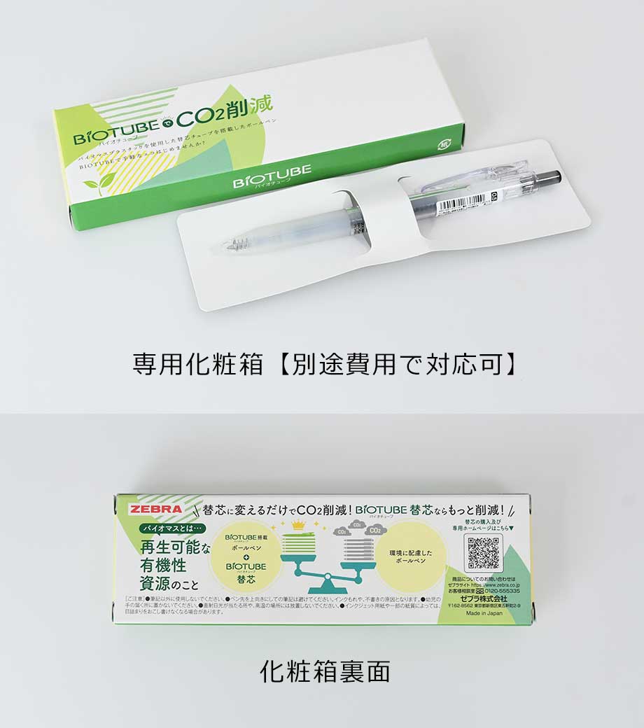 中芯チューブとグリップにサトウキビ由来のバイオマスプラスチックを使用し、CO2排出量を抑えたエコな「サラサ」が登場しました。サラッとした独自の書き心地はそのままに、環境に優しいノベルティとして年代性別問わず配布できます。白軸ボディで名入れが映えるので宣伝効果抜群です。