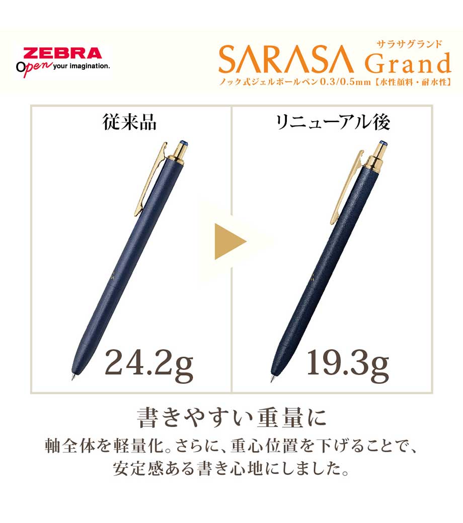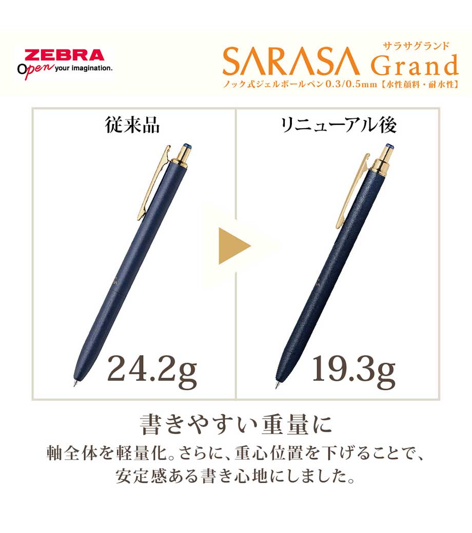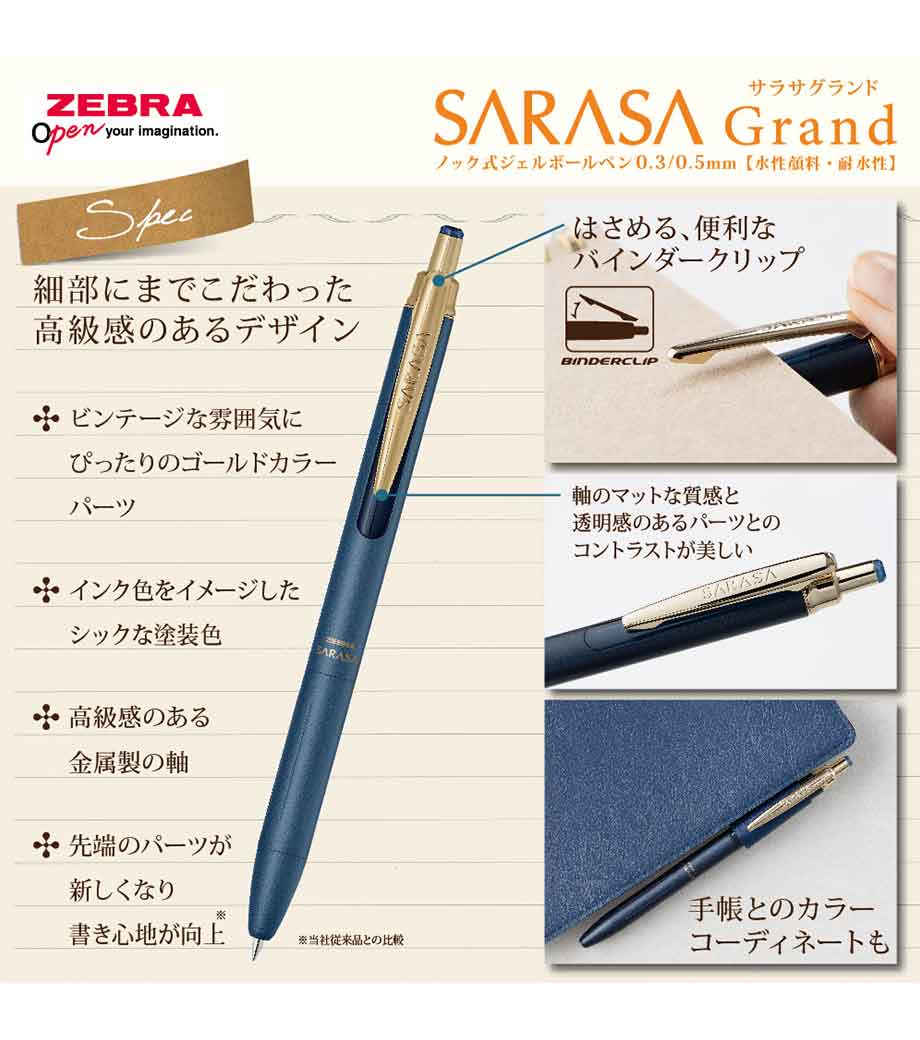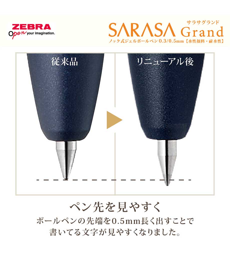 ゼブラ サラサナノ 0.3は極細のペン先でもくっきりキレイに書けるジェルインクボールペン。軸の内側にあるスプリングが、小さな字を書く時の紙をガリガリと削るような書き味を解消!口金が金属でペン先が重く、低重心なので安定感のある筆記ができます。さらに握りやすいラバーグリップ付き。インクの乾きが早く、スケジュール手帳への書き込みにも最適です。