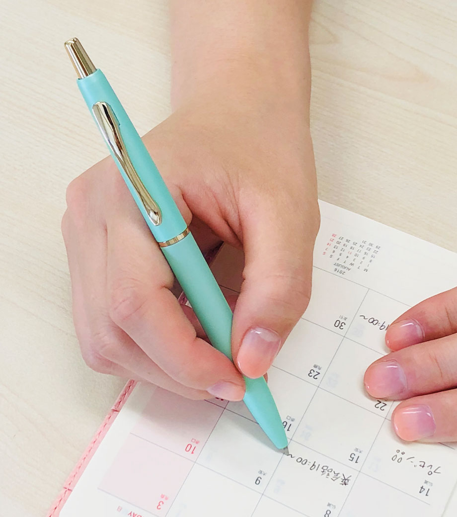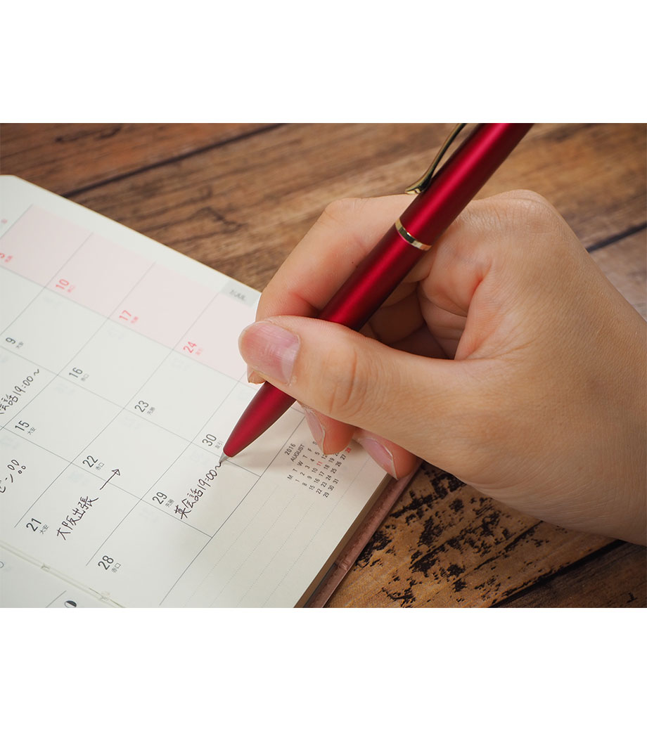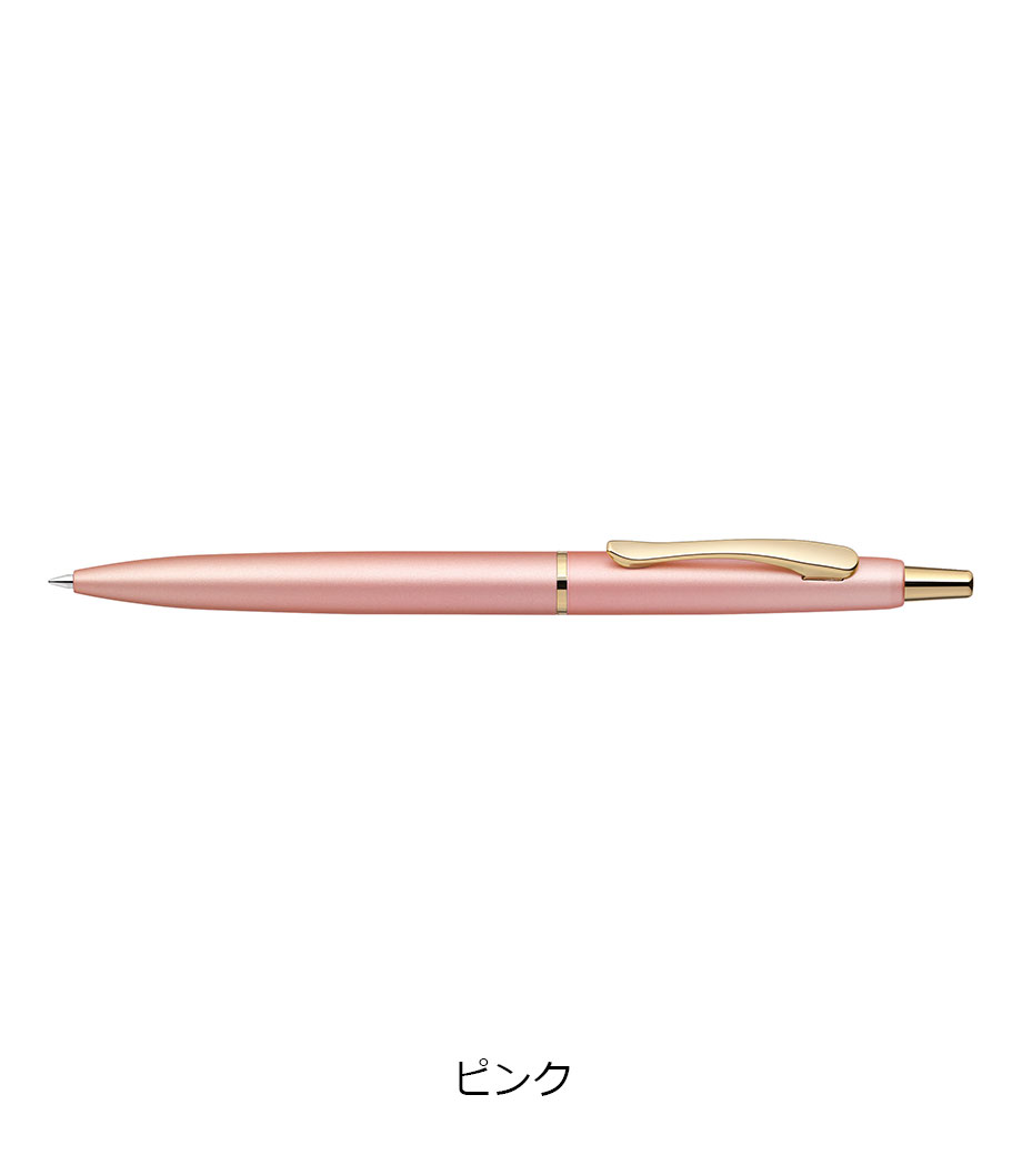 大人の女性の手元を美しく彩る、おしゃれなデザインのボールペンです。ツヤを抑えたマットな質感が上品で、ゴールドパーツが華やかさをプラスしてくれます。手になじむ曲線のフォルムは細身ながらも書きやすいです。公式文書にも使えるエマルジョンインク搭載で、普段使いはもちろんビジネスシーンにもぴったり。