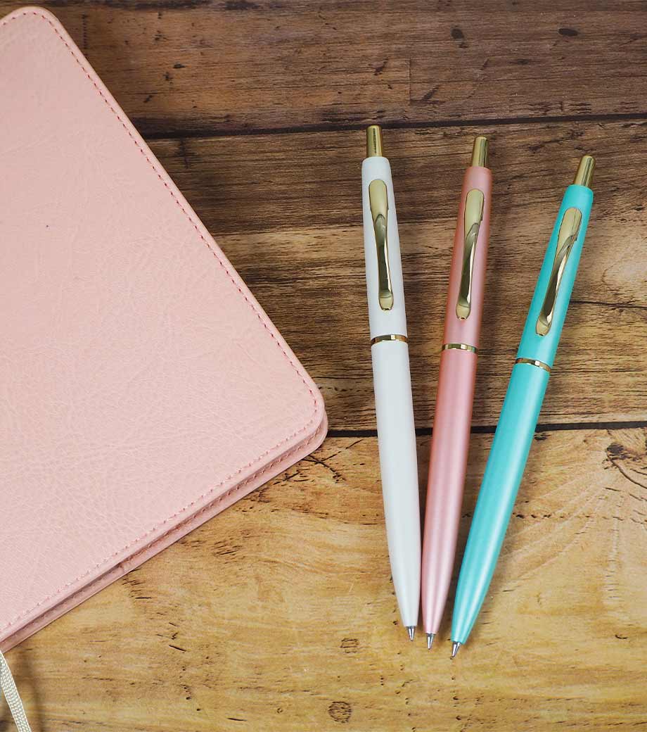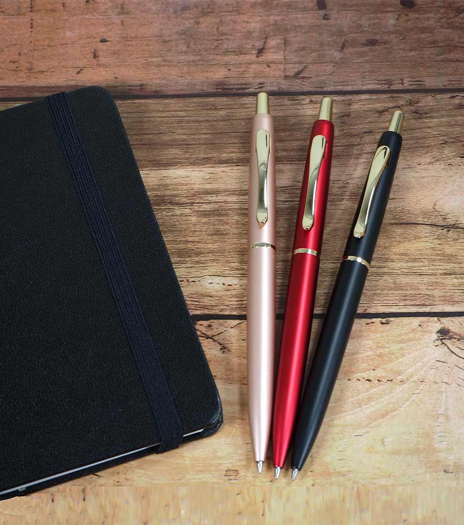 持つ人の印象がよくなる上質感あるカラー3色展開。1色ロゴ印刷でオリジナルボールペンが作れます。ノベルティにおススメです。