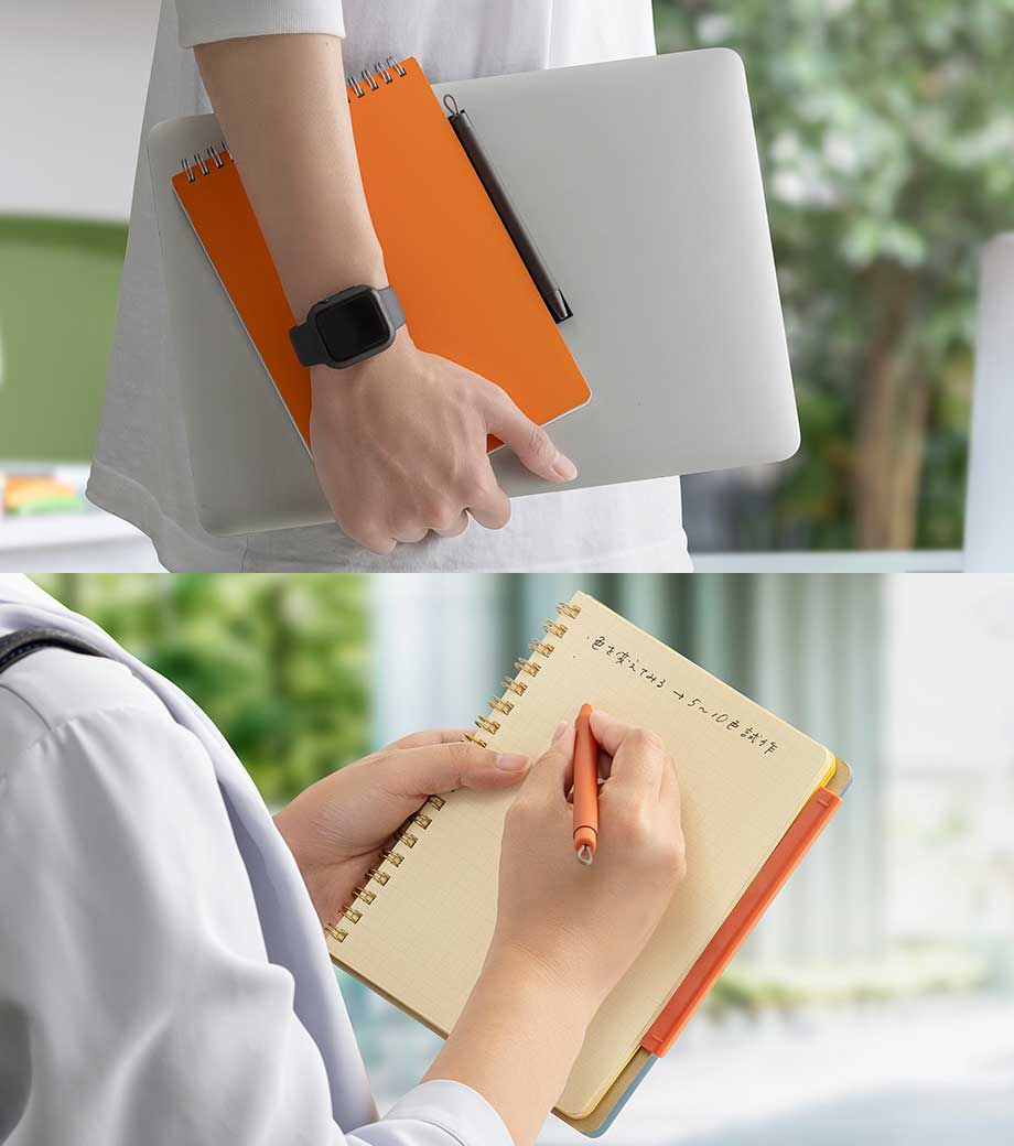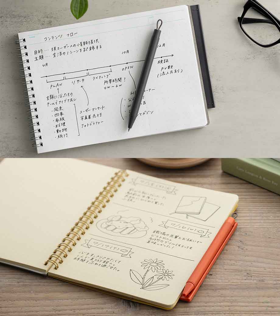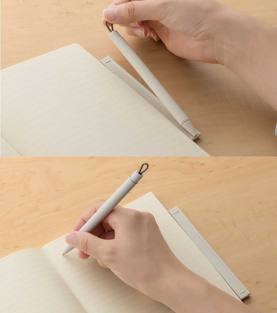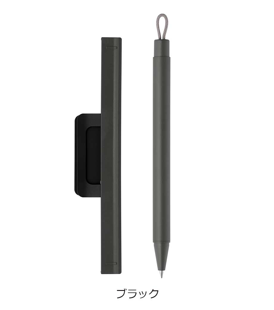 ノートと一体化して持ち運べる新発想のノック式ボールペンです。ネオジウム磁石が内蔵されたホルダーをノートにセットすれば、ペンが“ピタッ”と固定されます。サラサラ書けるジェルインクで書き心地も抜群!オンオフ問わず使えるスタイリッシュなデザインが魅力です。