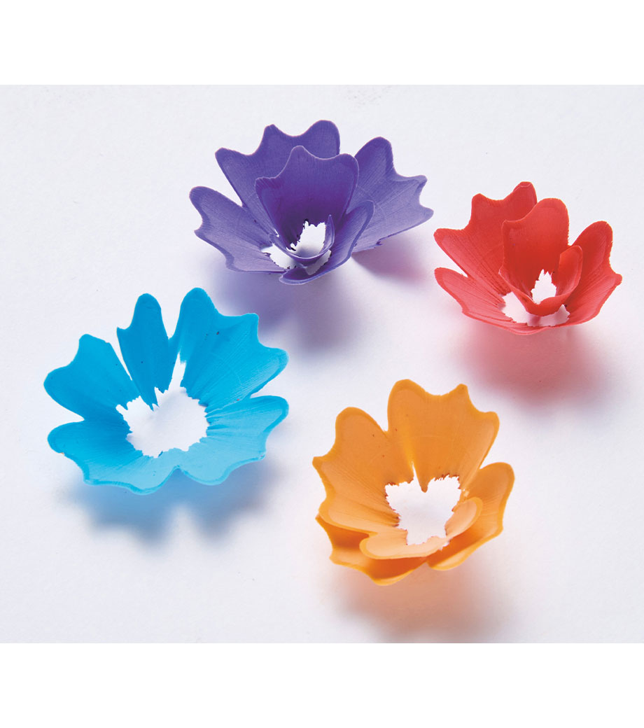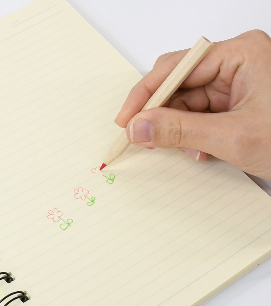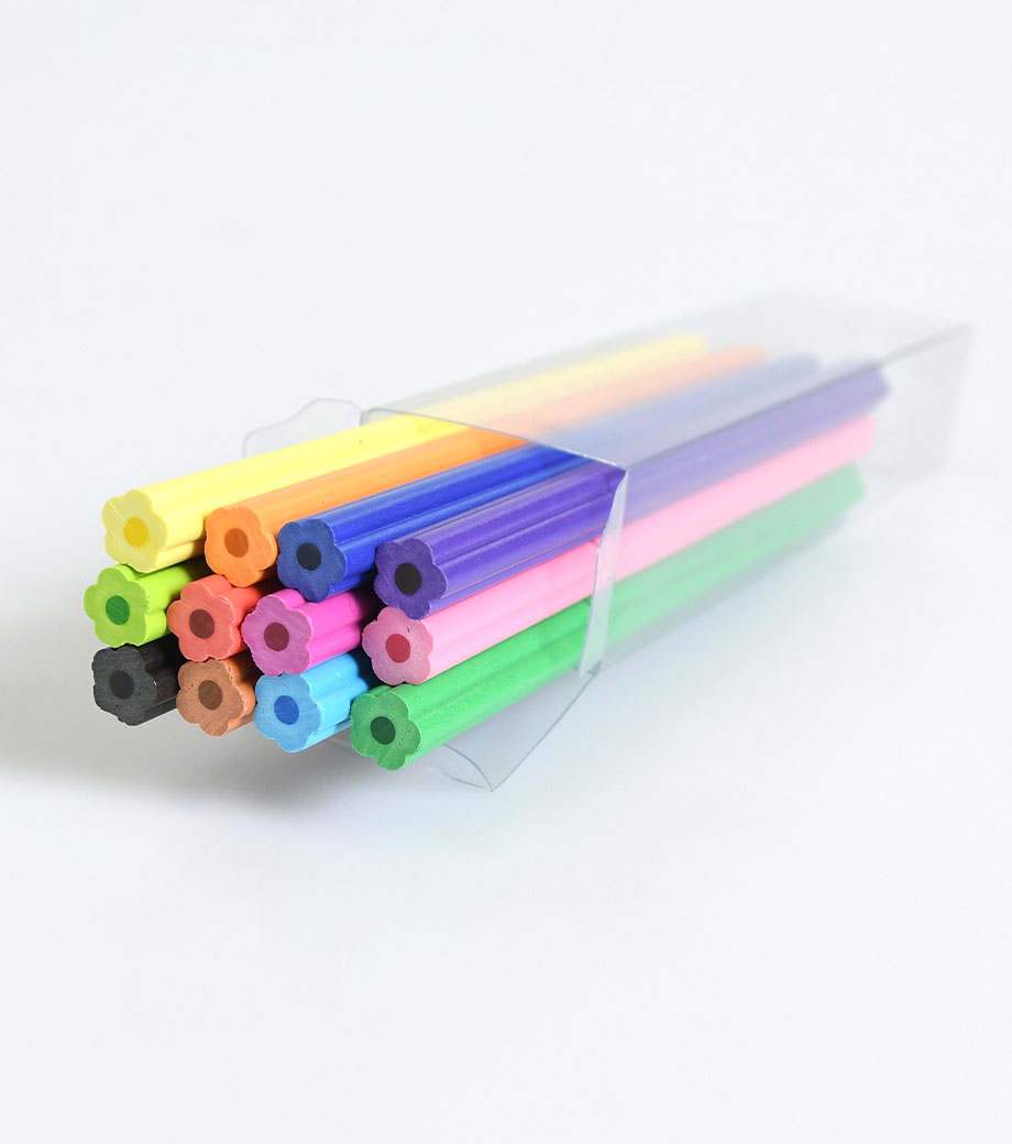木を使わないリサイクル素材使用の12色入り色えんぴつセットです。コンパクトで配りやすいケース入り。色えんぴつの断面が花形デザインになっているため、見た目もキュート!幼稚園や保育園のアート活動はもちろん、住宅展示場やイベントのプチギフトとしてもおすすめです。