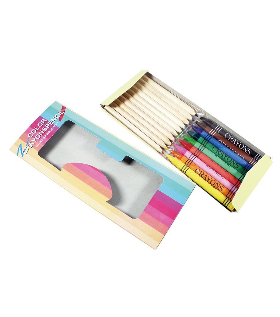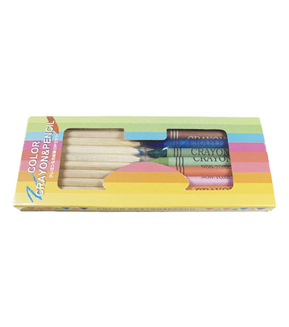 クレヨン&色鉛筆19Pセット【カラー箱タイプ】は、クレヨンが9本、色鉛筆が10本入ったコンパクトなお絵かきセットです。
