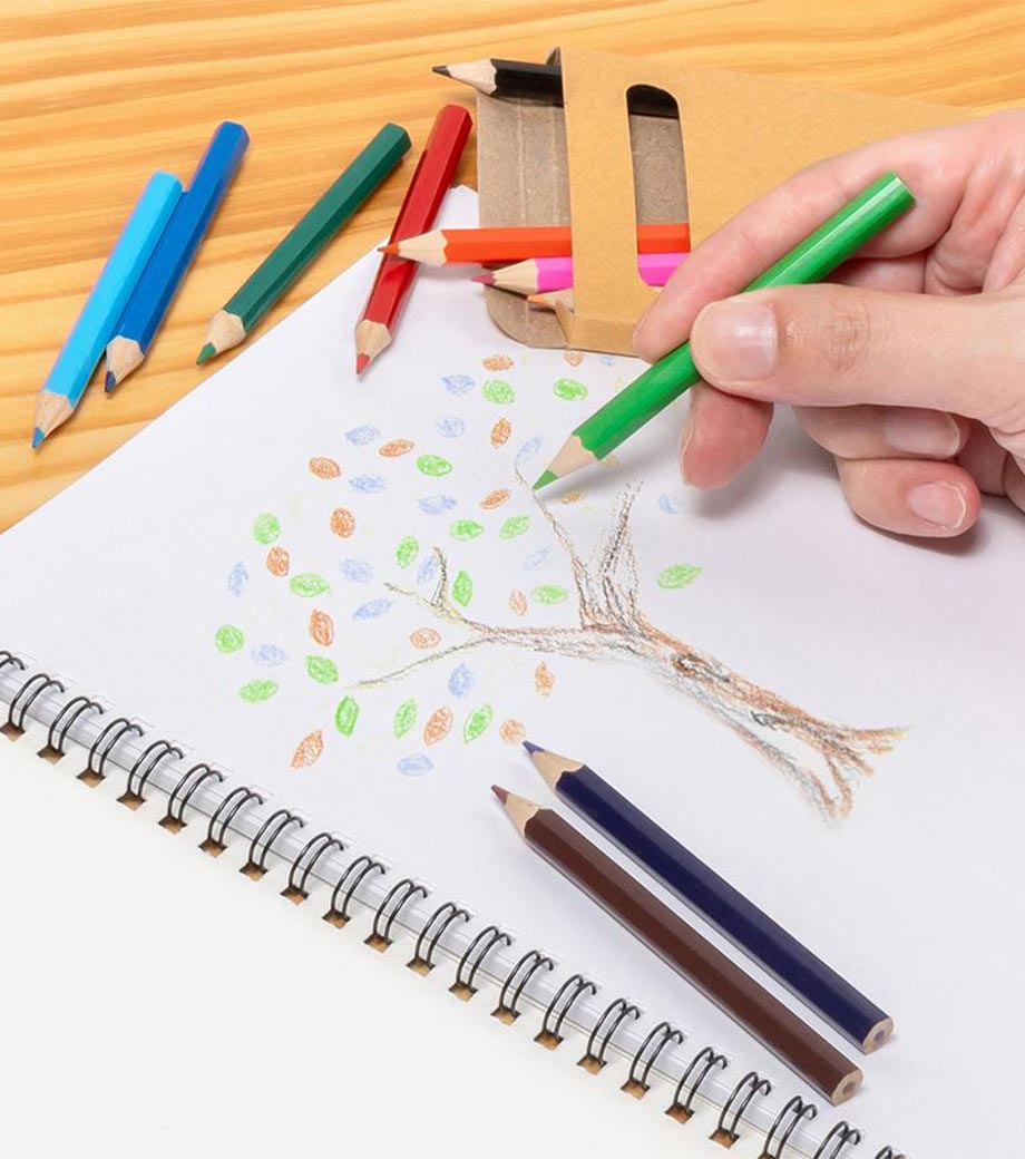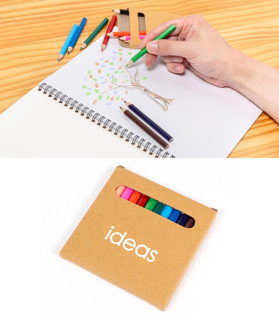 軽くてコンパクト、カラフルで楽しい6色入りのミニ色鉛筆のセットです。クラフト紙使用のパッケージでエコ志向の方にも嬉しいアイテム。かさばらないのでお子様も持ち運びが簡単。鞄に入れてお出かけすれば、いつでもどこでもお絵描きができます。