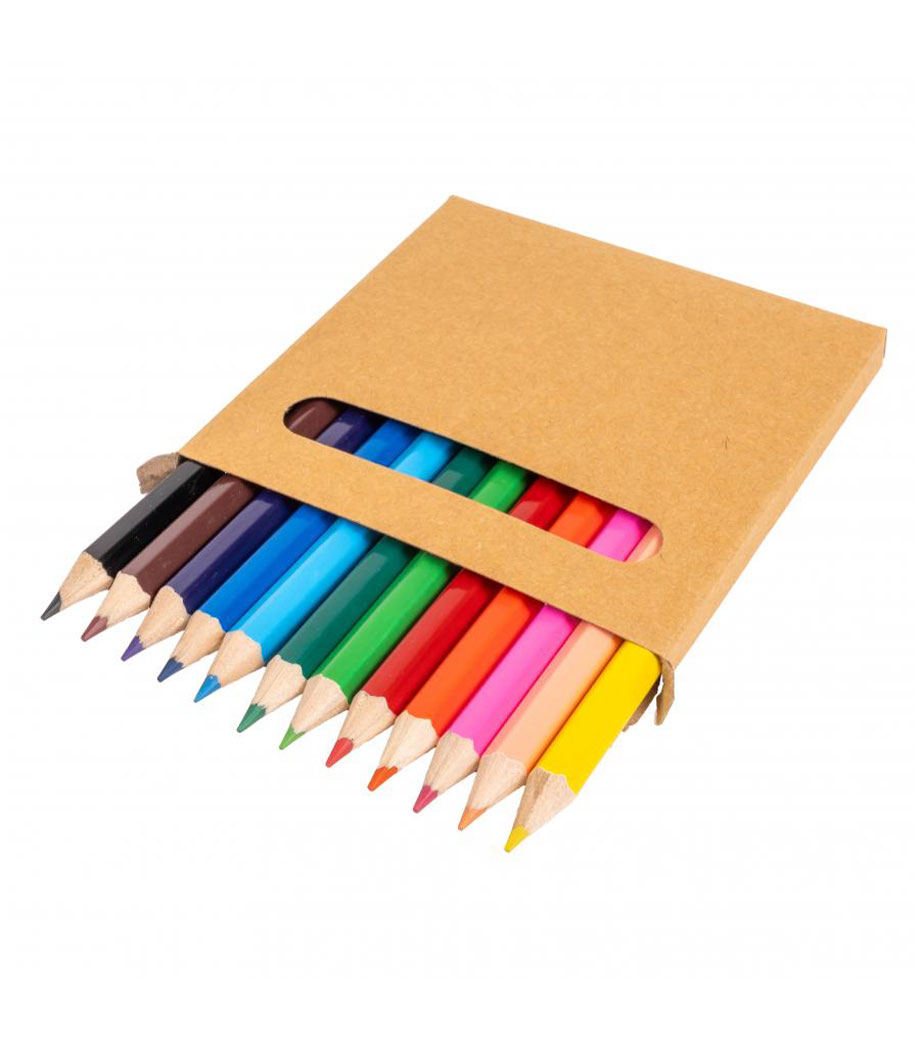 再生紙を使用したクラフトケース入りで、環境にやさしい12色の色鉛筆セットです。エコ素材なので、SDGsへの貢献をアピールできます。小ぶりサイズでお出かけ用にもぴったり!カラフルな色合いでお絵描きやぬりえがもっと楽しくなります。