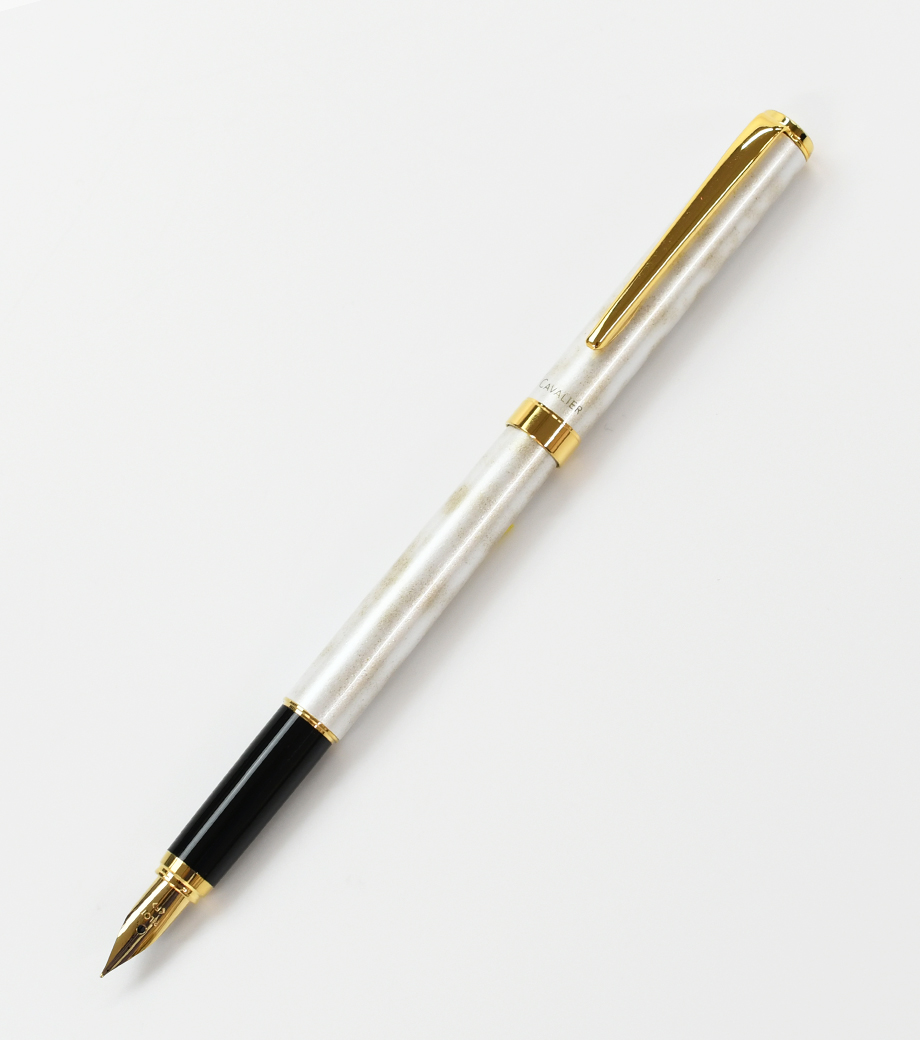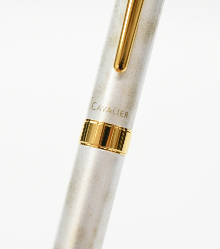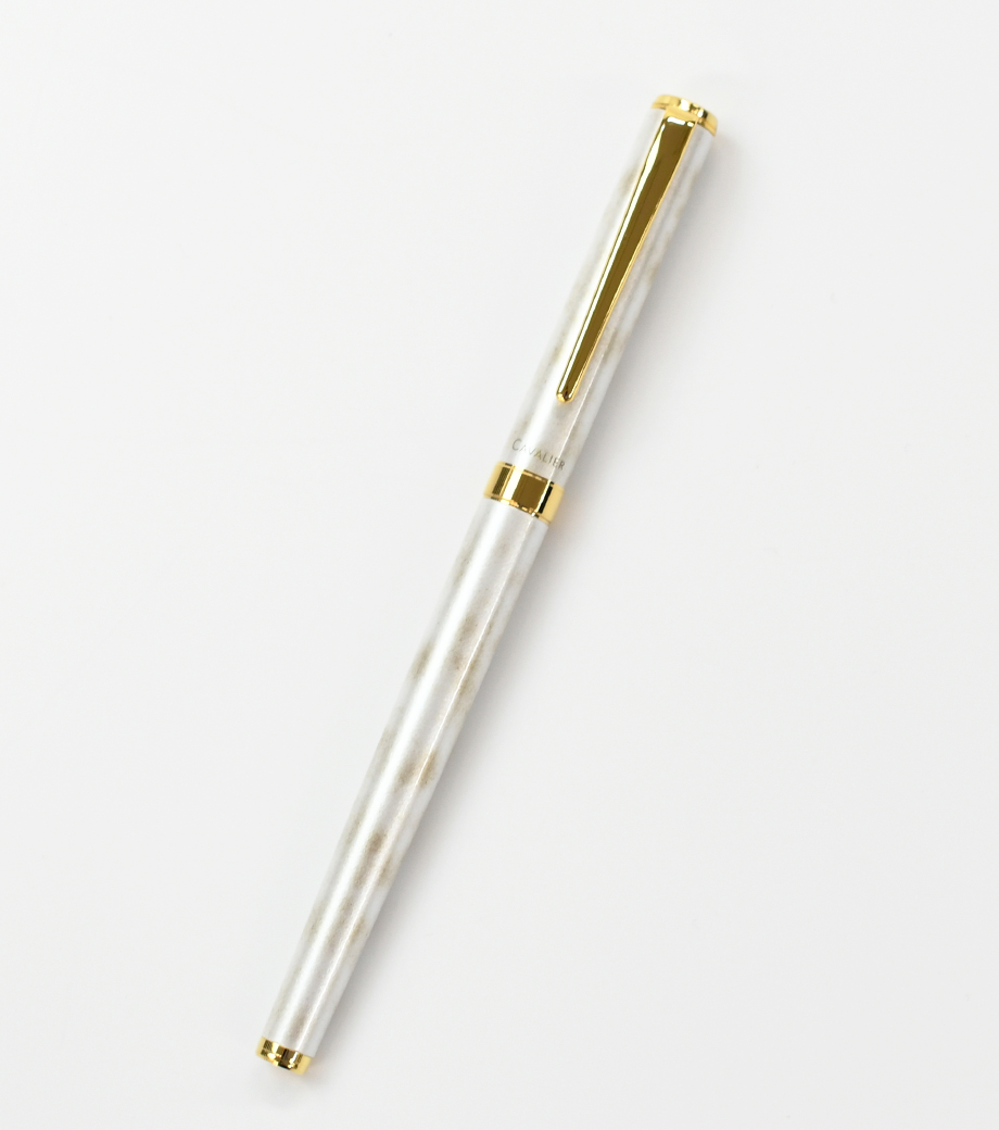 パイロット カヴァリエ(マーブル) 万年筆は大理石のようなマーブル模様とゴールドのアクセントが高級感のある万年筆。スリムな金属製ボディで、手の小さい方でも持ちやすいのが特徴です。