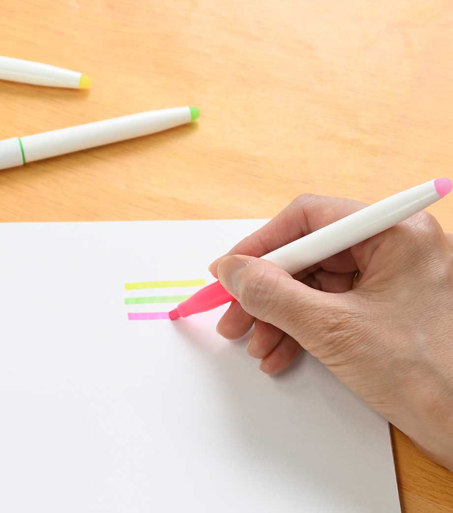 ラインの引き間違いもすぐに消して引き直せます。通常の蛍光ペンのマーキングではチカチカして目が疲れるという方にも、目に優しい淡い色なのでオススメ。内容や目的で色分けでき、仕事や勉強がはかどること間違いナシ!