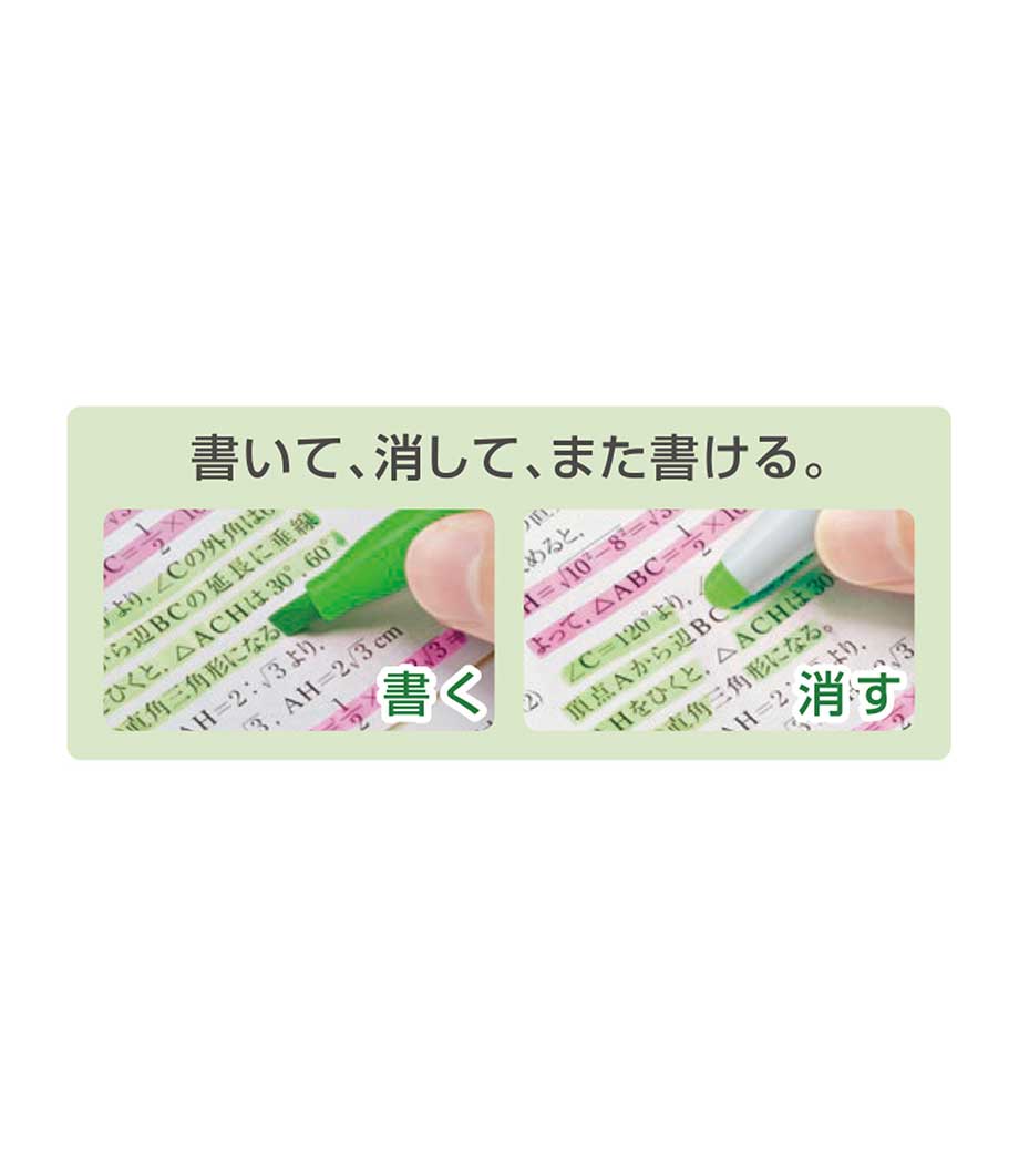 ラインの引き間違いもすぐに消して引き直せます。出番の多いピンク、イエロー、グリーンがセットになっているので、仕事や勉強がはかどること間違いナシ!