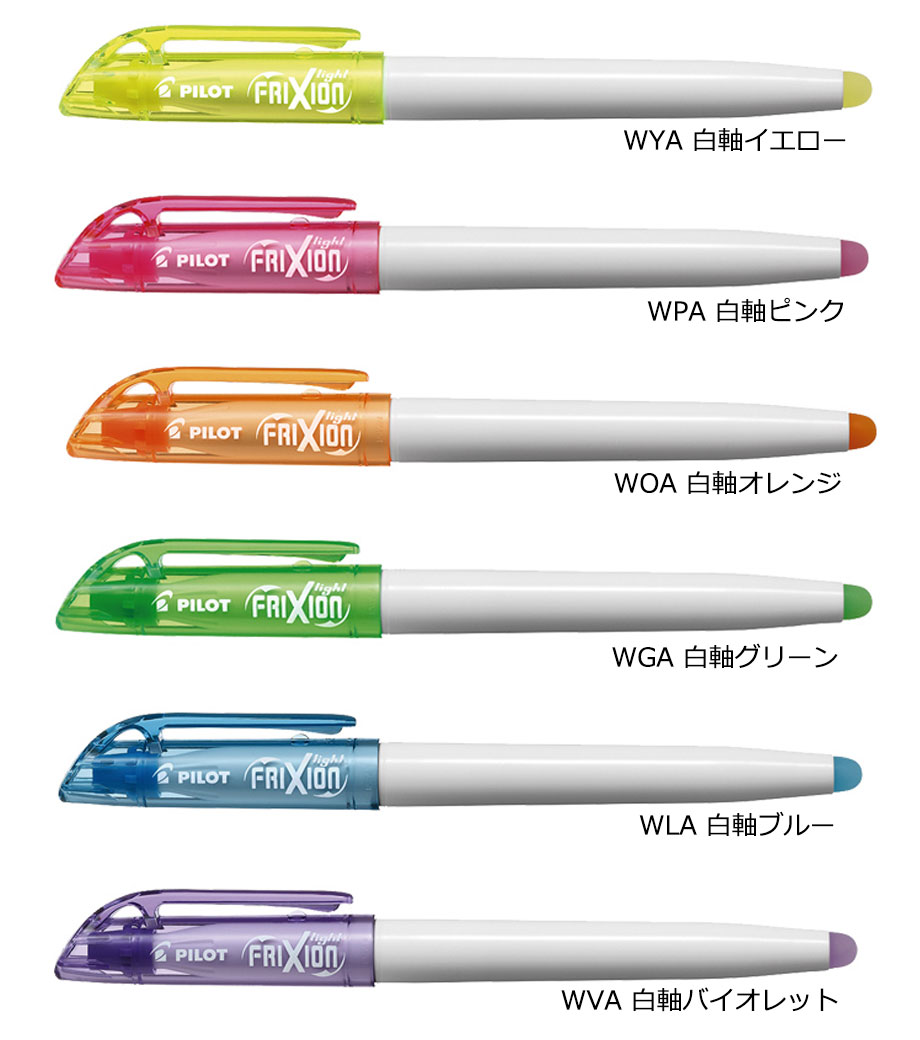 パイロット フリクションライト 6色セットは、新開発の「蛍光フリクションインキ」を搭載した、パイロットのフリクションシリーズの蛍光ペン。摩擦熱で筆跡を消去するので消しカスが出ず、鉛筆やシャープペンシルの消し跡と比べて消し残りが非常に少ないのも特長です。