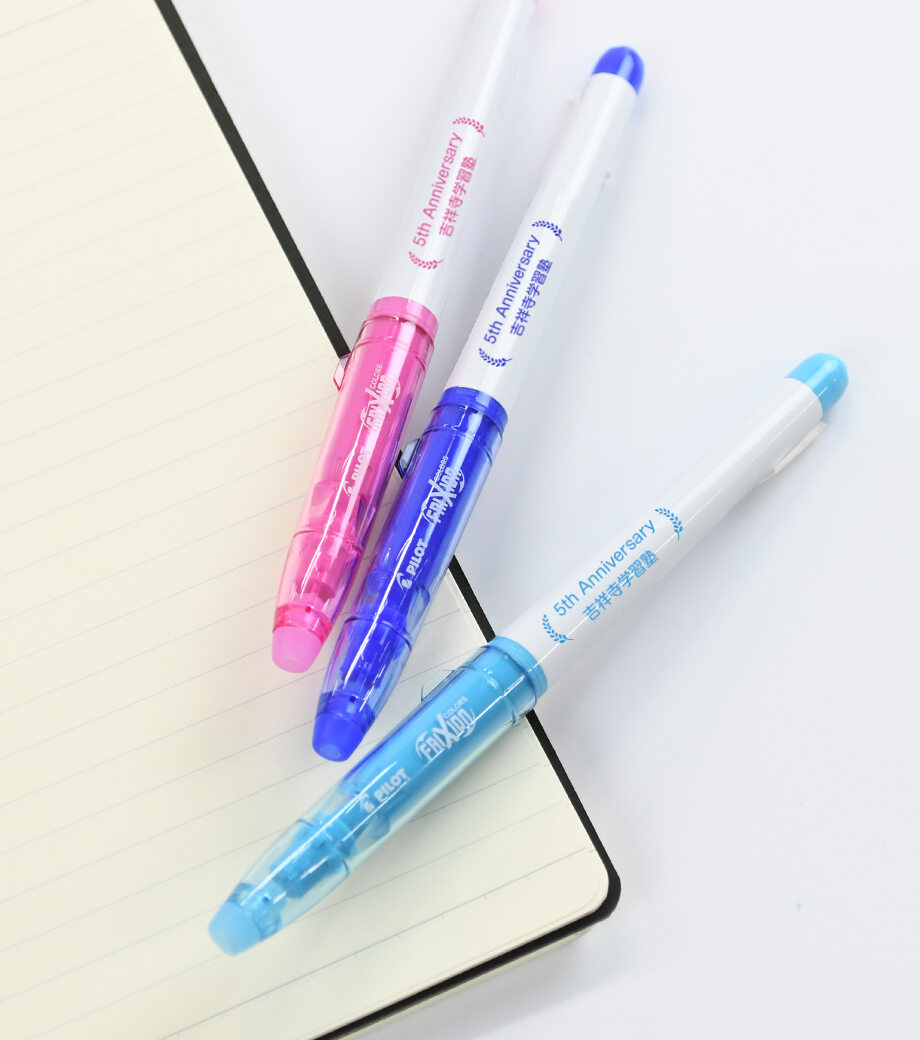 「フリクションライト」は、新開発の「蛍光フリクションインキ」を搭載した、パイロットの“フリクション”シリーズの蛍光ペン。オフィスや学校、ご家庭でも何かと使う蛍光ペンは、ノベルティや粗品の定番で人気があります。