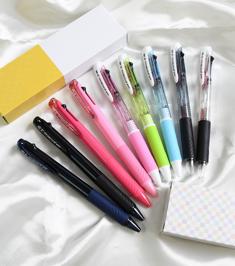 従来の4&1のジェットストリームに比べて軸径が約1.5mm細いので、スリムなタイプがお好みの方にぴったりです。本体色はブラック・ピンク・ライトピンクとスタイリッシュな3色からお選びできます。普段使いから、卒業記念品のプレゼントにも喜ばれるノベルティです。