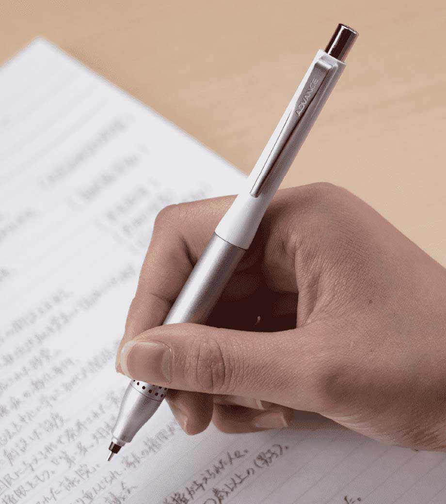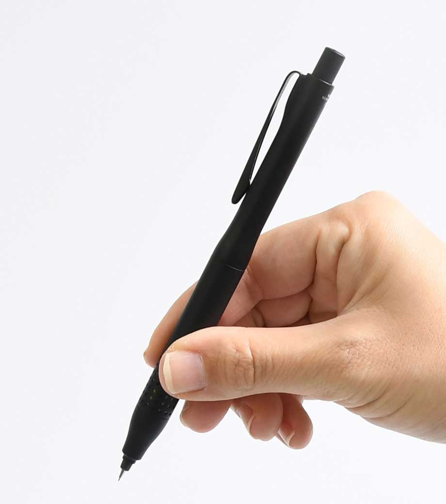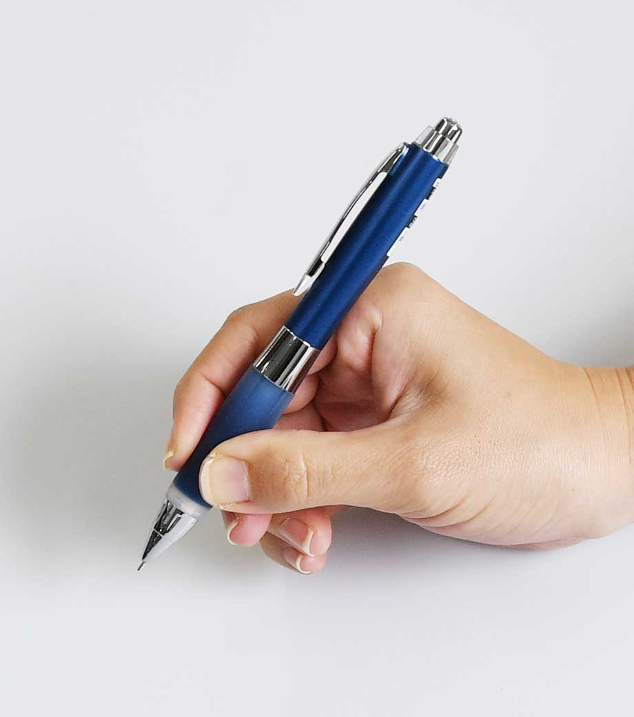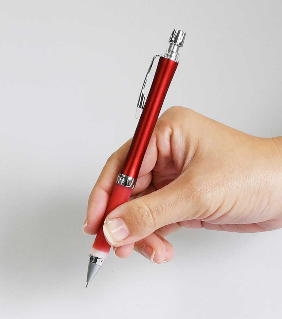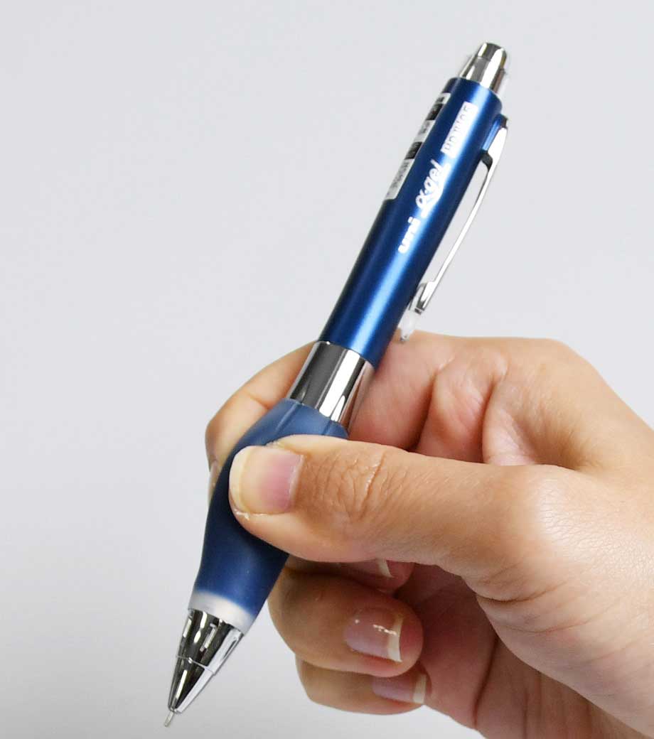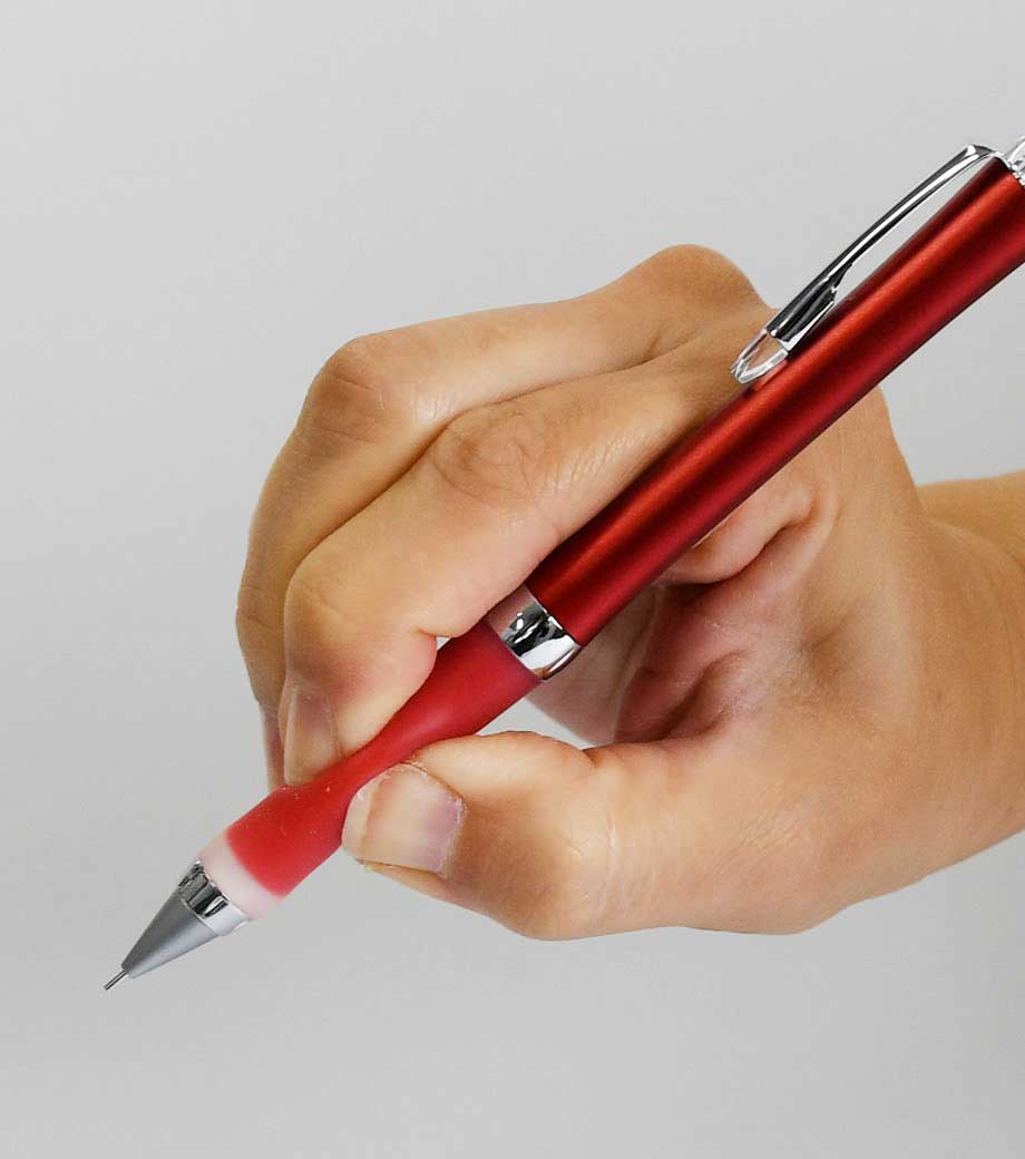 1.握りやすい太軸に、グリップ部にはフィット感のあるシリコンラバーを採用。長時間筆記でも首・腕・肩の疲れを軽減します。