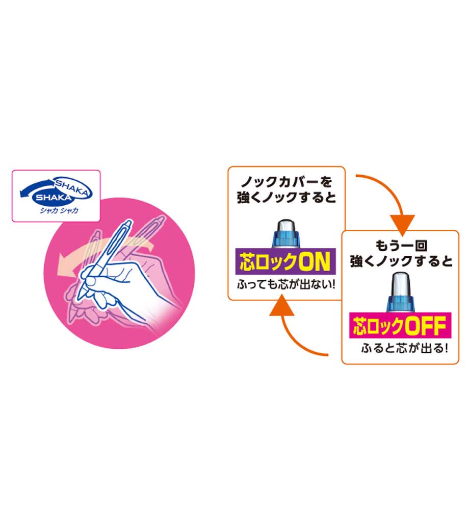 ペンを振ると芯が出てくるフレフレ機構搭載で楽ちんです。