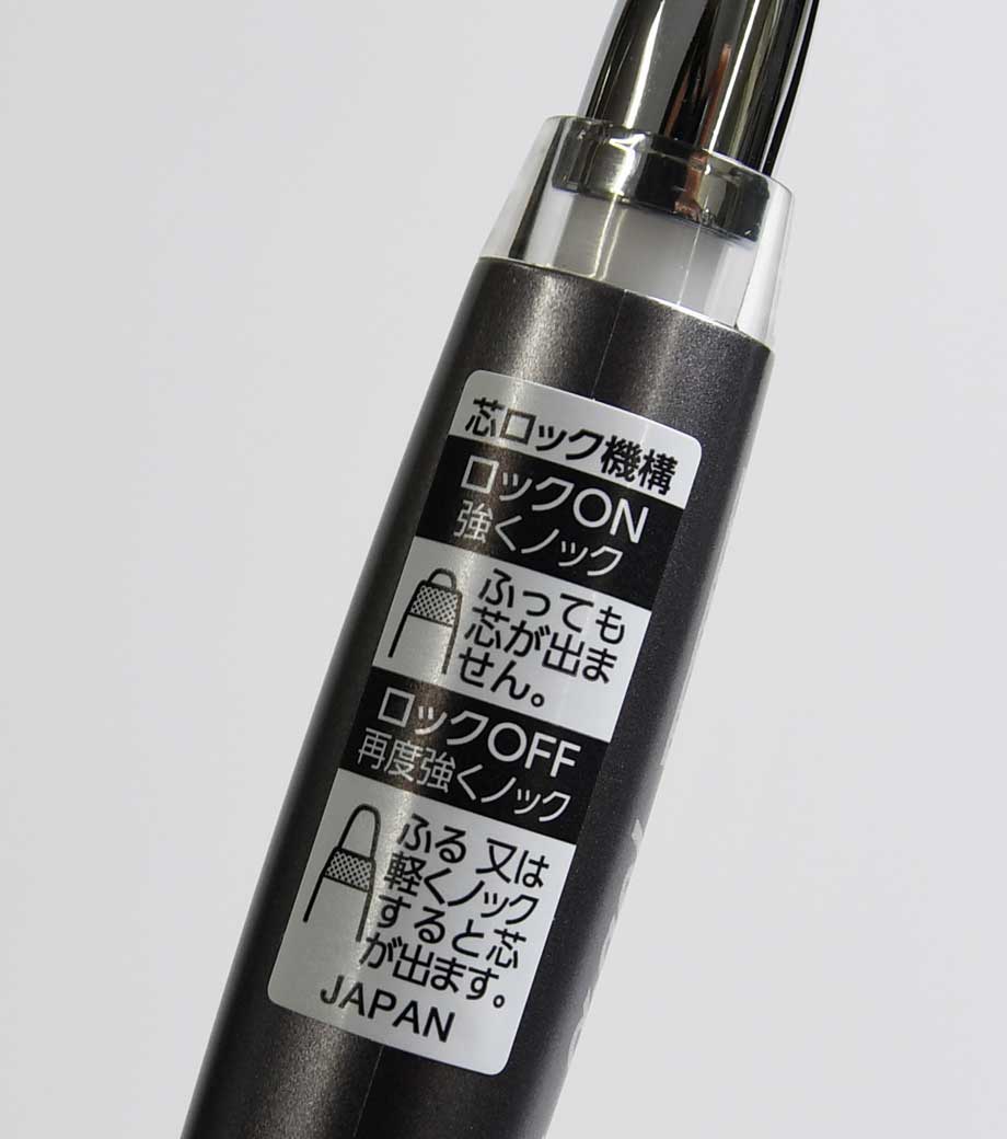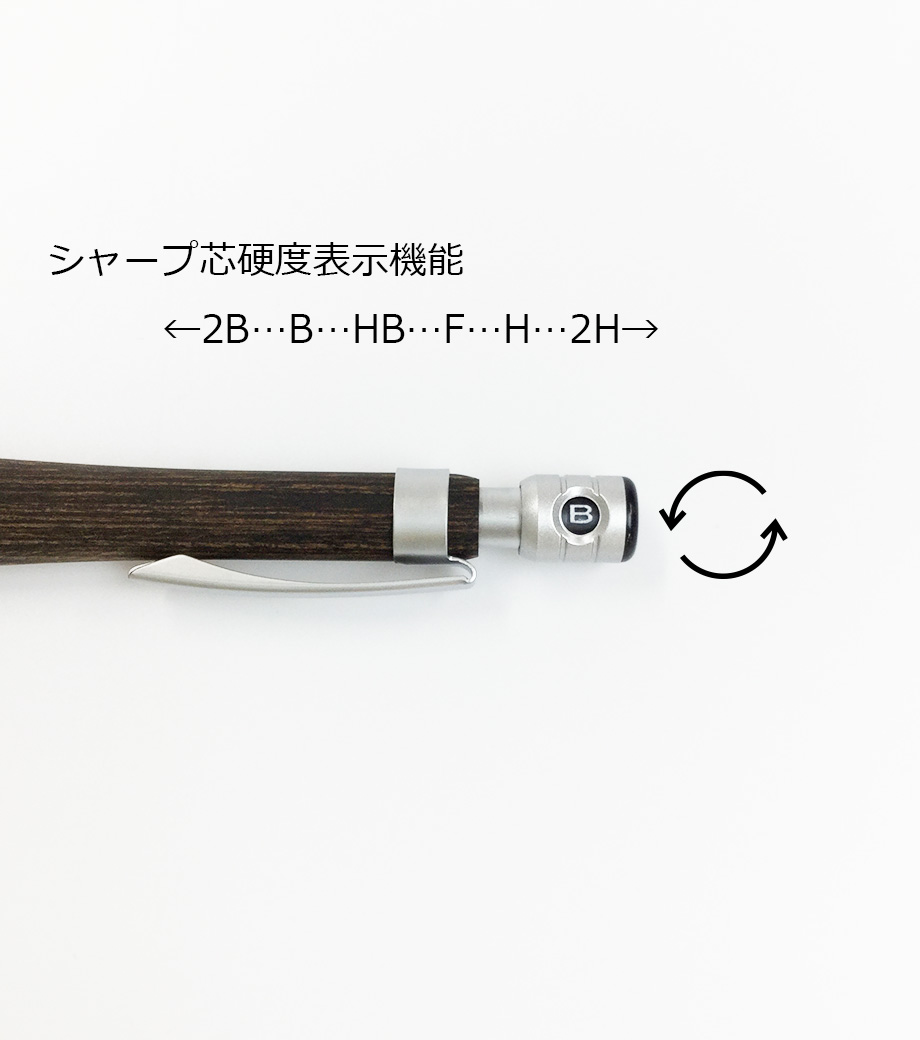 ノック部分には芯の硬度表示機能がついています。複数のシャープペンに濃さの違う芯を使用するときに、一目で分かりとても便利!
