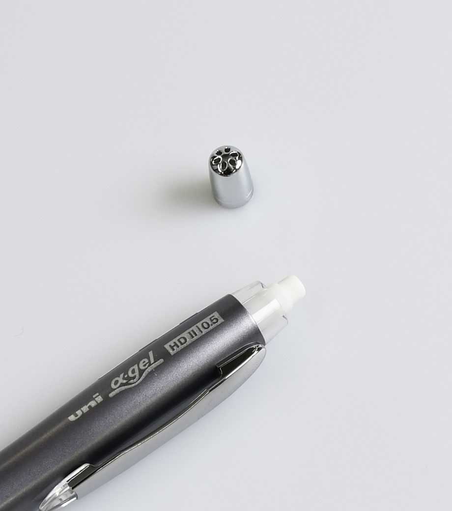 三菱鉛筆 ユニ アルファゲル スリム軸(かため) 0.5mmのグリップはシリコーン素材の硬め高反発ゲル。しっかりと握り込んでも安定感があり、快適な筆記をサポートしてくれます。ペンケースの中でも邪魔にならない細身のボディでペン先は0.5mm。ずっと使い続けたくなるシャープペンです。