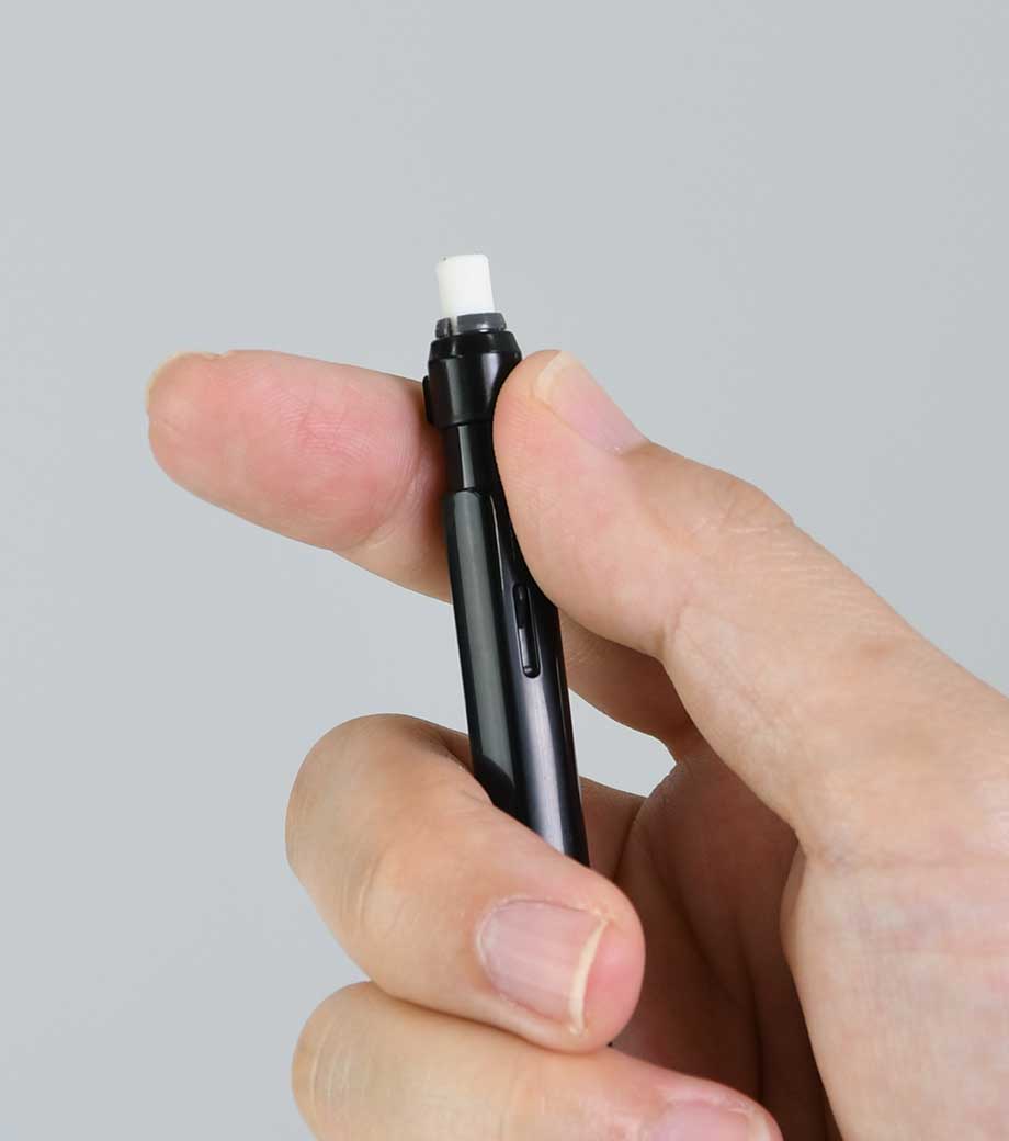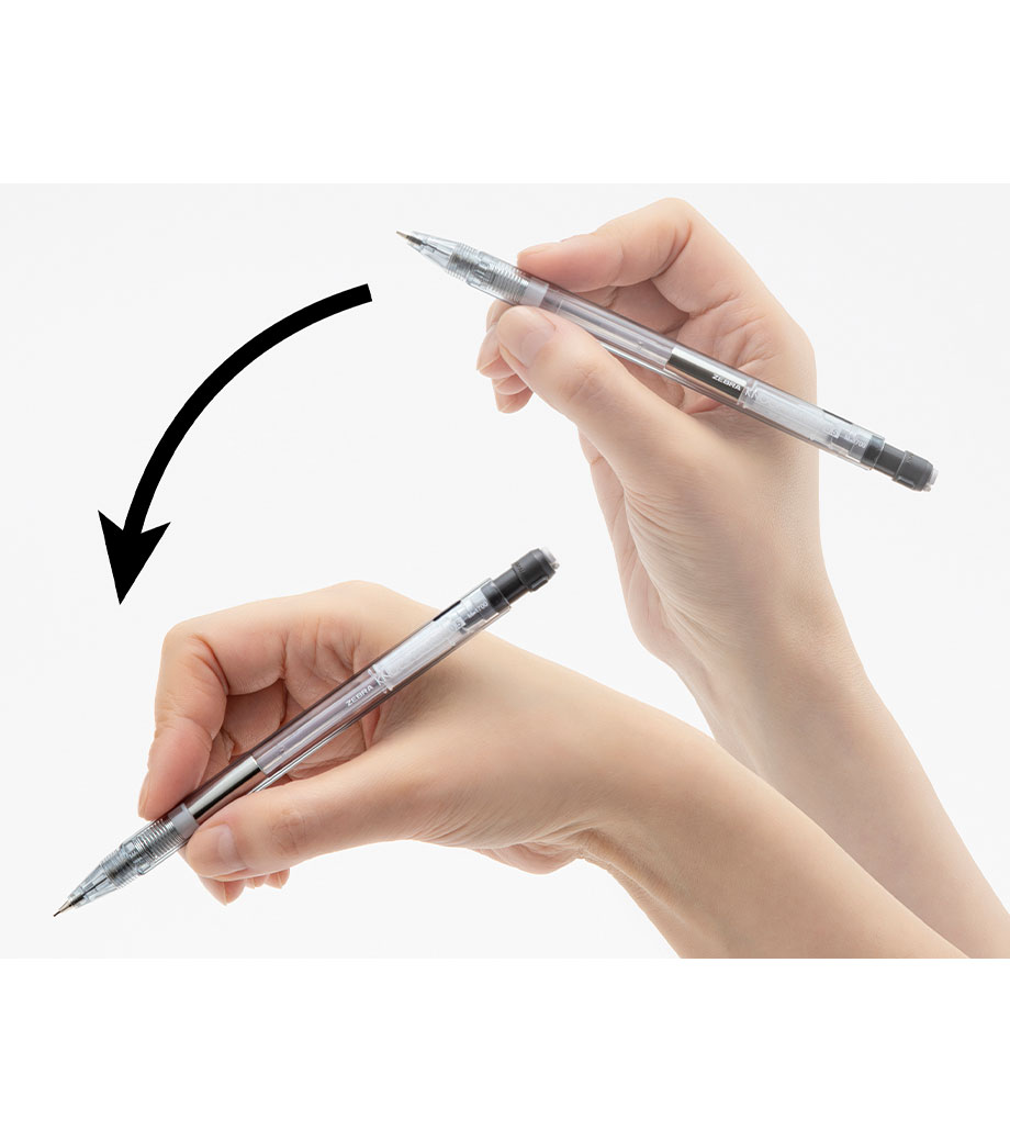 芯を出す・文字を書く・消すが片手で完結する、機能性に優れたシャープペンです。振るだけで芯が出せるフリシャ機能搭載で、スムーズな筆記をアシストします。消しゴムは繰り出し式なのでキャップをなくす心配もありません。六角形の軸は鉛筆のように持ちやすく、グリップ部がないため持つ位置を選ばないシームレス設計です。