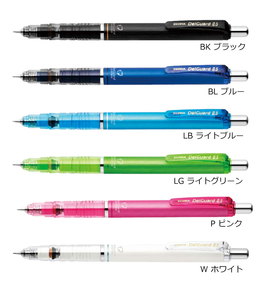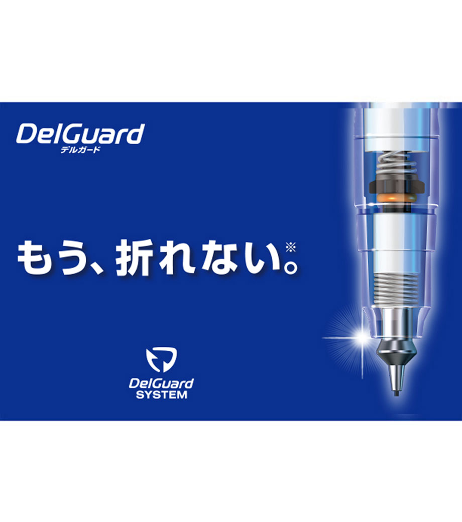 「ゼブラ デルガード 0.5」は普段から筆圧が強い人でも安心して書き続けることができる折れないシャープペンシル。ゼブラ独自の「デルガードシステム」を採用。スプリングが縦・斜めの筆圧を吸収しあらゆる方向から芯を守ってくれるので、短い芯がスキマに挟まっておこる「芯づまり」がありません。
