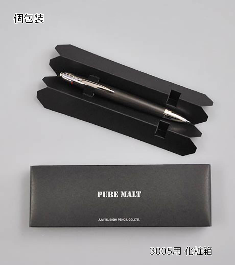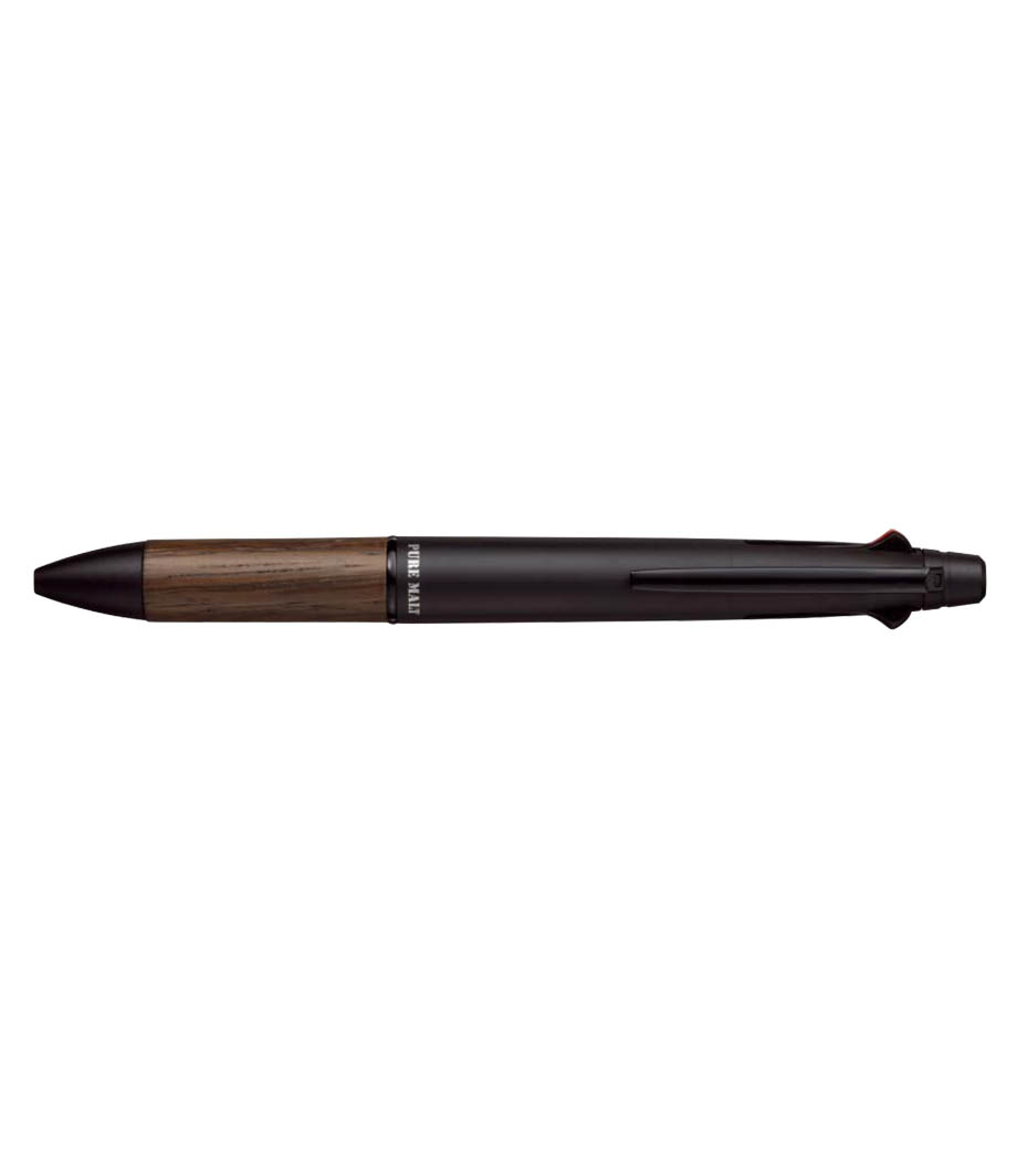 三菱鉛筆 ピュアモルト 3機能ペン 超・低摩擦 ジェットストリームインク搭載は木の部分にウイスキーの樽の廃材を使用し、ペンに生まれ変わらせました。メタリックボディにマッチした軸がかっこいいと評判で、中身の芯は書きやすいと誰もが認めるジェエトストリーム芯。受付やショールーム、ビジネスマンの営業にも恥ずかしくない大人の多機能ペンです。