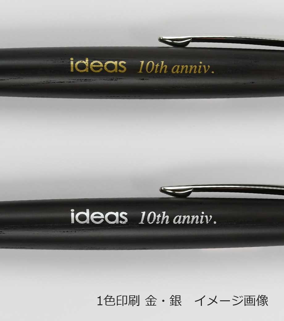 印刷はペン軸部分に1色印刷が可能。就職祝いや昇進祝い、永年勤続表彰記念など特別な記念品を贈りたい時に選ぶのにふさわしい高級ノベルティです。