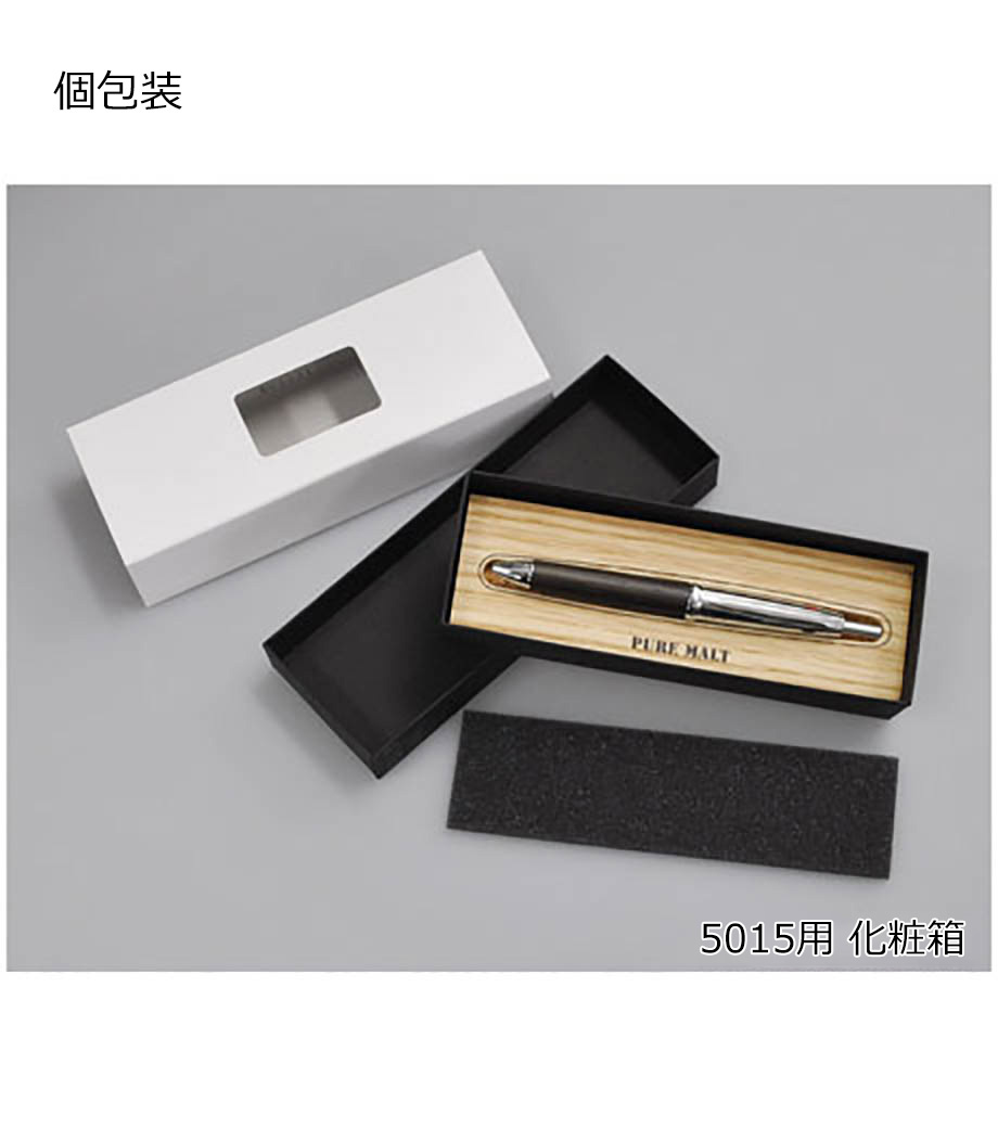 三菱鉛筆 ピュアモルト(オークウッド・プレミアム・エディション) 4機能ペンは使いやすい振り子ノックシャープペンと3色ボールペンに消しゴムを搭載した多機能ペン。直径10.9×厚さ14.1×全長140.6mm、重さ35gと、長時間の筆記にも適したサイズ感に仕上げました。年月を重ねたオークとマッチする専用ボックスに、高級感増すレーザー彫刻印刷をしてセットすればプレミアムな記念品の完成です。プレゼント用にはもちろん、自分へのご褒美用としてもピッタリですよ。1色ロゴ印刷も可能。のし、包装もご対応しておりますので、大切な方への贈り物に。