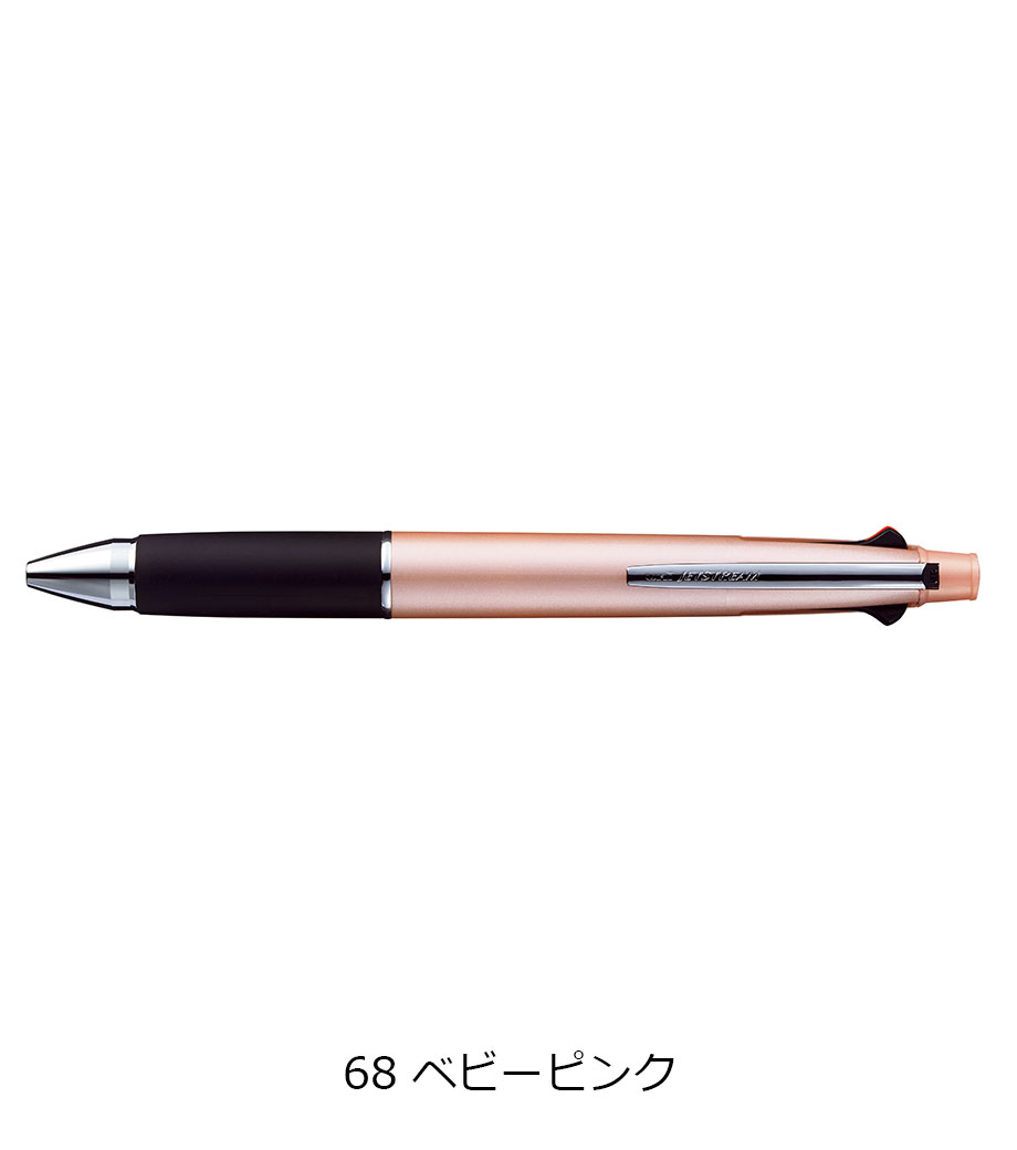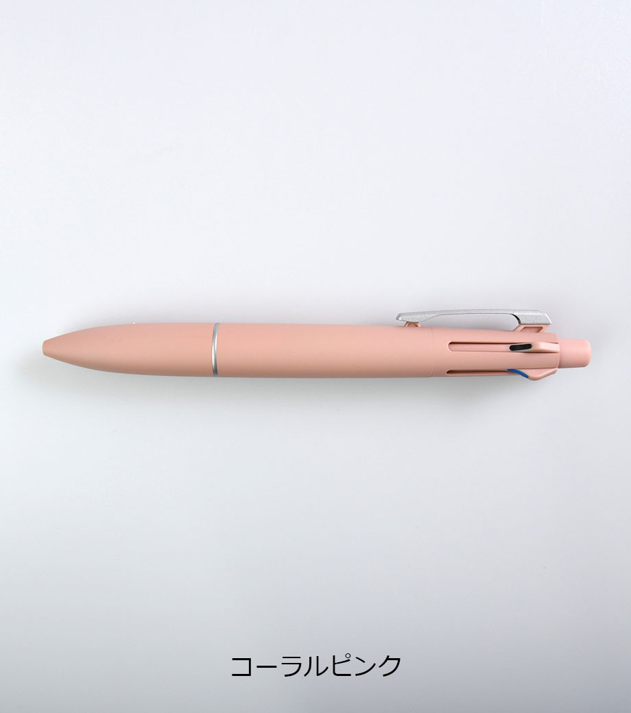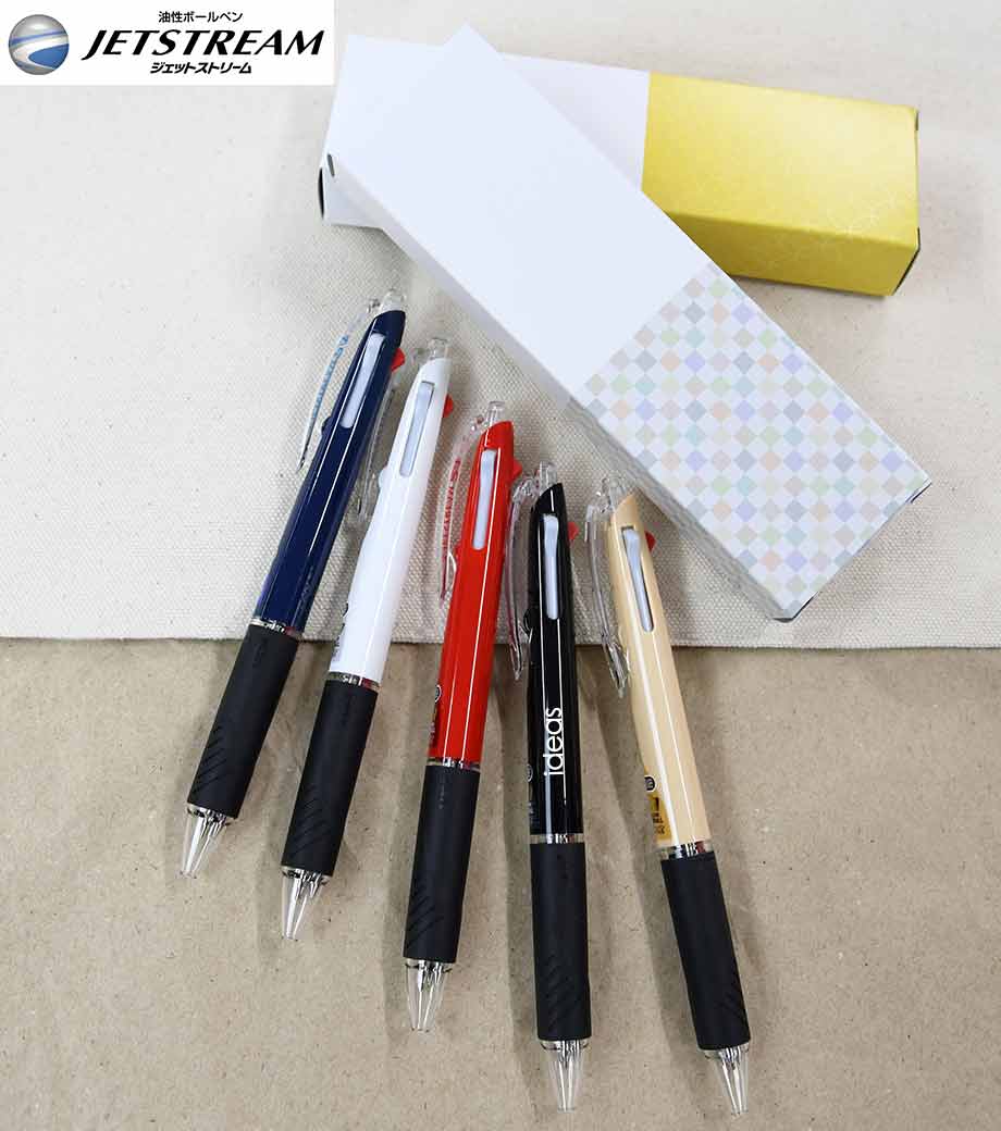 従来の4&1のジェットストリームに比べて軸径が約1.5mm細いので、スリムなタイプがお好みの方にぴったりです。本体色はブラック・ピンク・ライトピンクとスタイリッシュな3色からお選びできます。普段使いから、卒業記念品のプレゼントにも喜ばれるノベルティです。