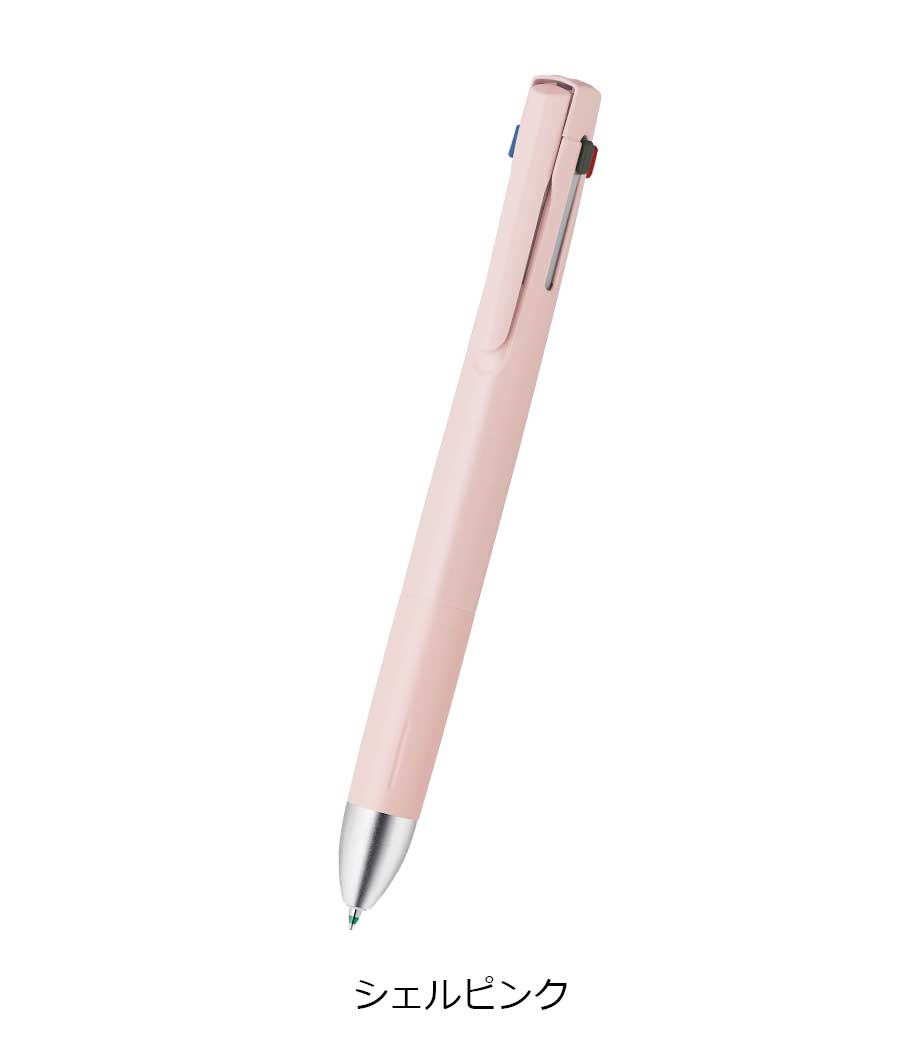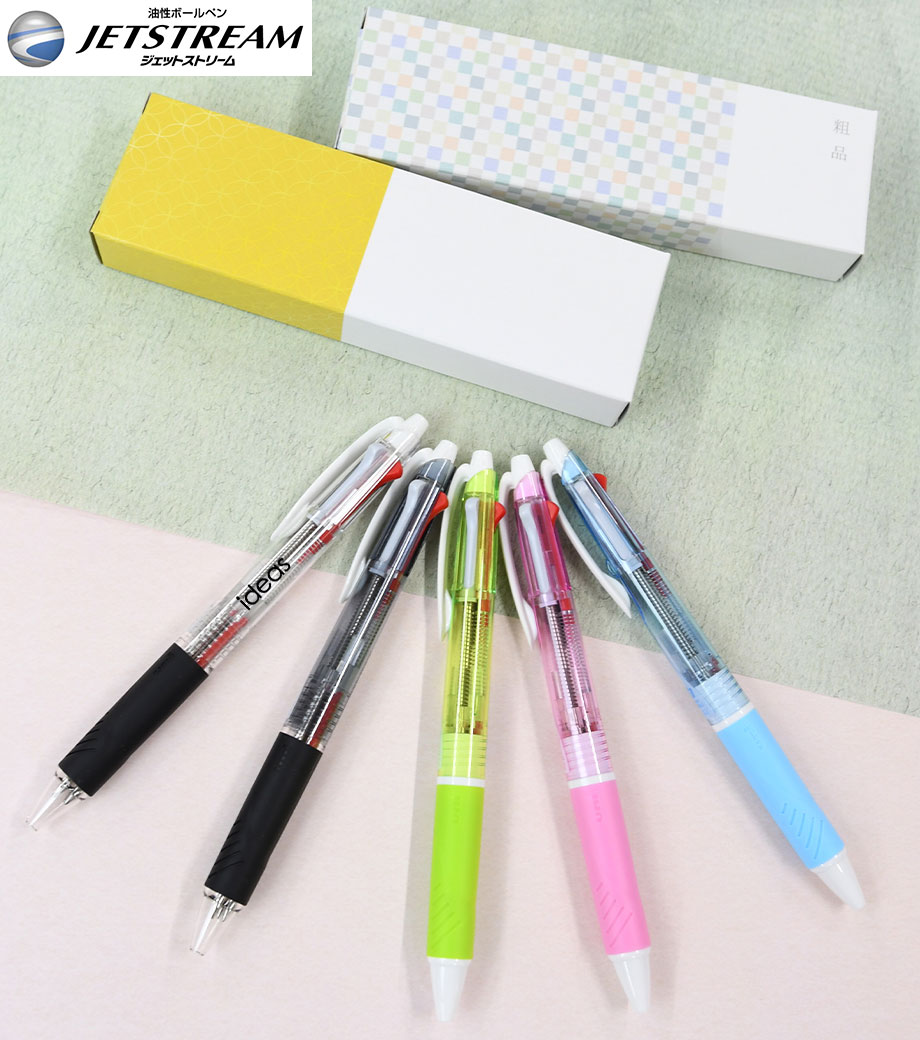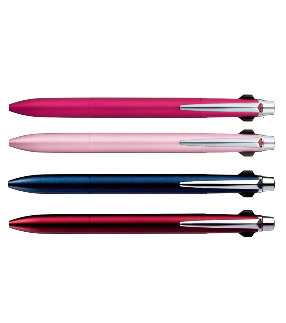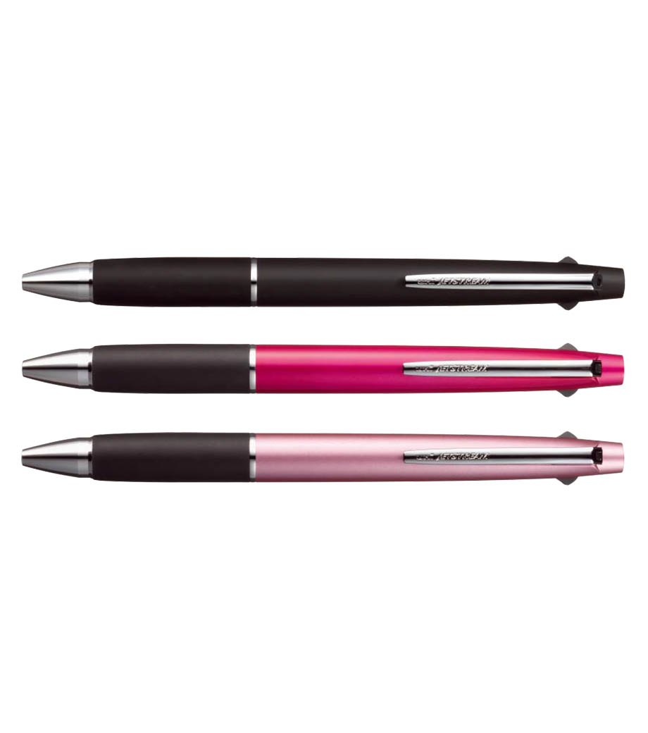 従来の4&1のジェットストリームに比べて軸径が約1.5mm細いので、スリムなタイプがお好みの方にぴったりです。本体色はブラック・ピンク・ライトピンクとスタイリッシュな3色からお選びできます。普段使いから、卒業記念品のプレゼントにも喜ばれるノベルティです。