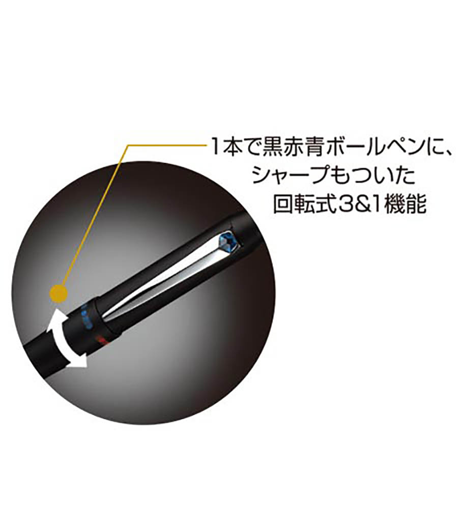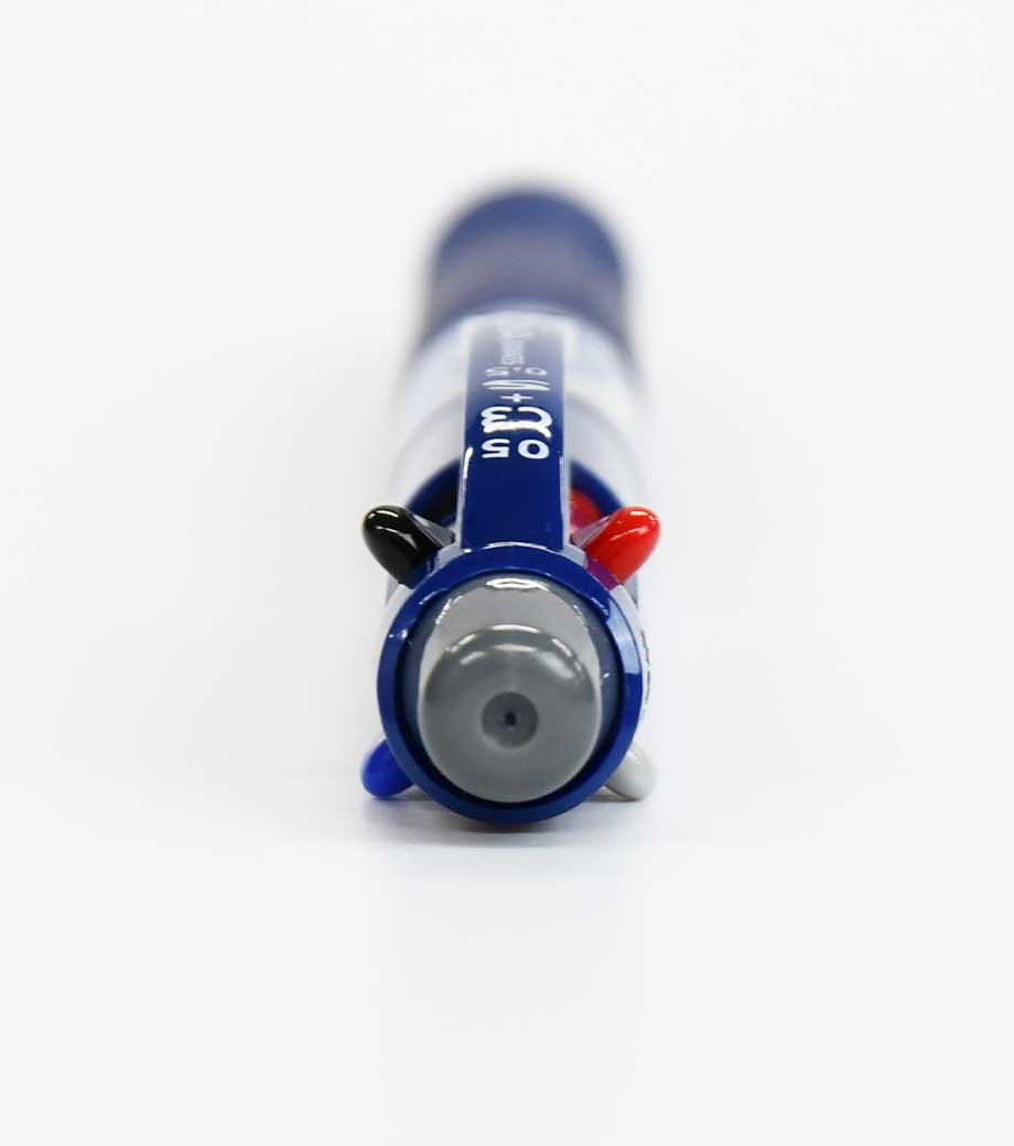 マルチ4ファンクションペンは黒・赤・青のボールペン(0.7mm)とシャープペン(0.5mm)の、4つの機能を1本にまとめた便利なペンです。