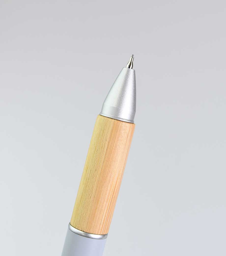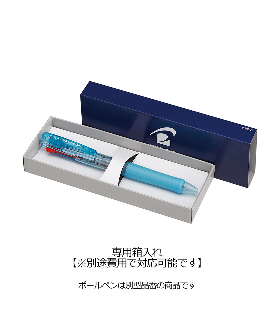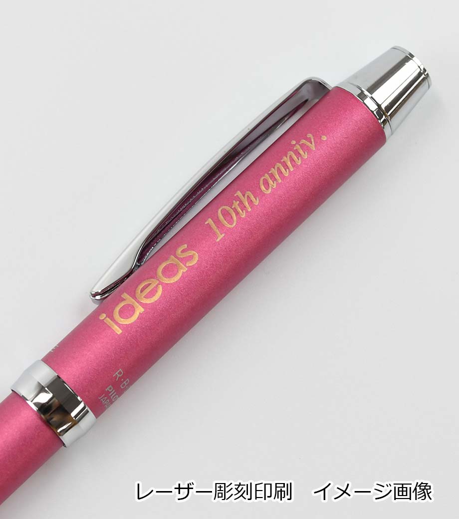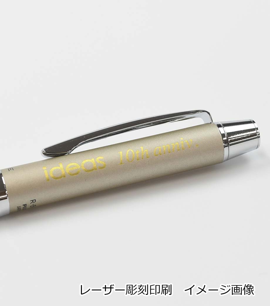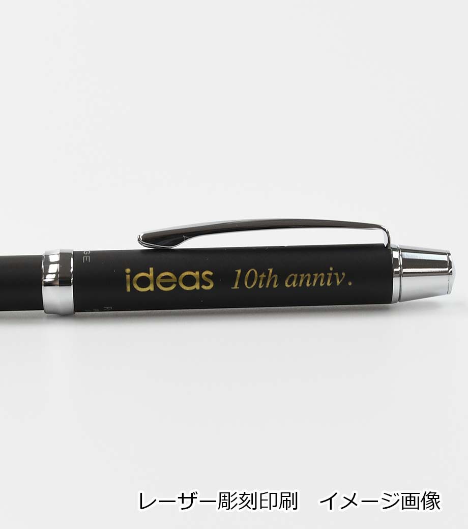 打合せや外出の時にこれ1本あれば他の筆記具は必要ないので便利です。本体カラーは黒、青、緑、白、透明の5色。本体側面に1色印刷が可能です。記念品としておすすめです。