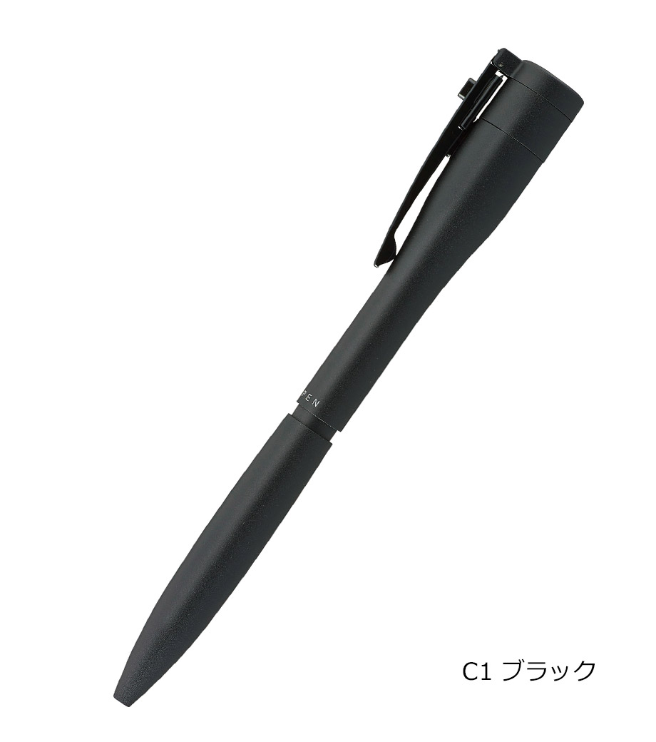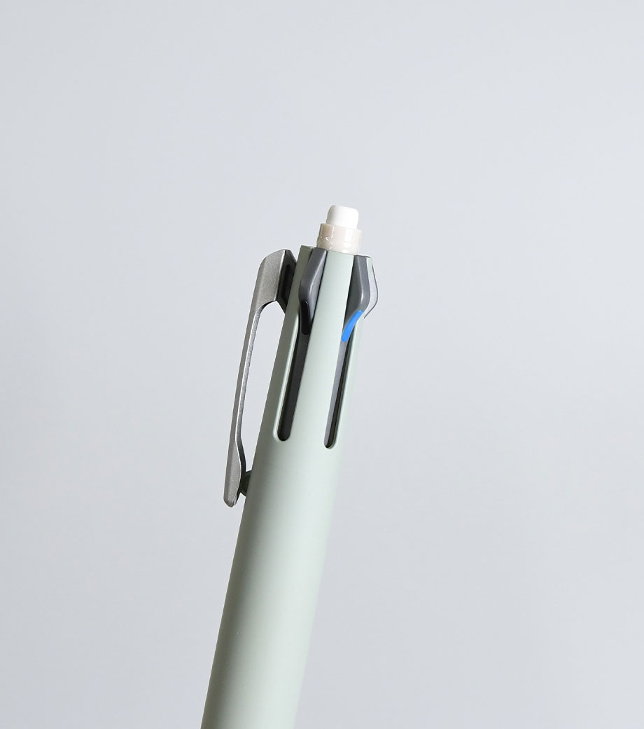 クリップ部分をまわす角度と止める位置で機能を切り替えます。マットなボディは持った時にすべりにくく、なめらかな書き味。シンプルなデザインなので、使うシーンを選びません。