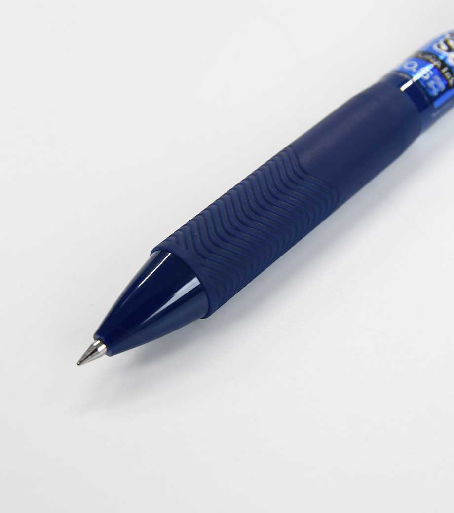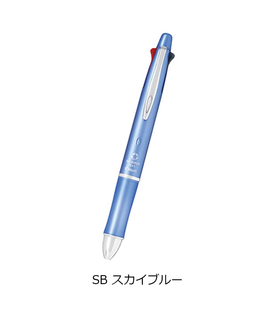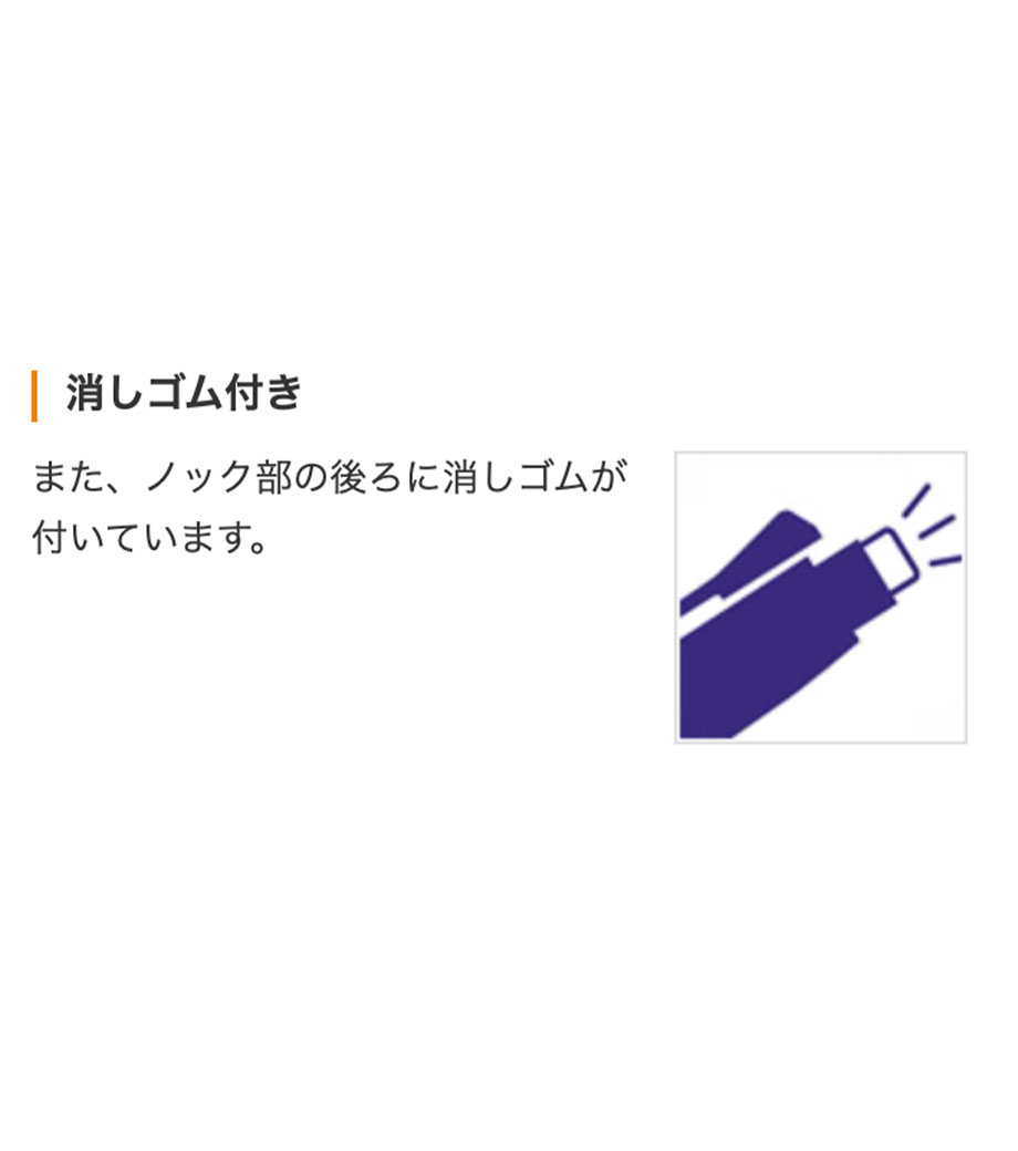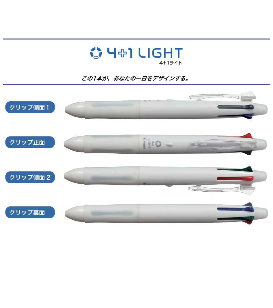 握り心地が良く軽い力でもブレずに濃い文字が書ける、シャープペン+4色ボールペン。細かい字も書きやすいペン先は0.5mmです。ノートに挟めるバインダークリップをノックするとシャープペン。消しゴム付きです。太めのボディは上は楕円形でもグリップは円形のシームレスなデザイン。指にフィットして書き味が良くお気に入りの1本になります。
