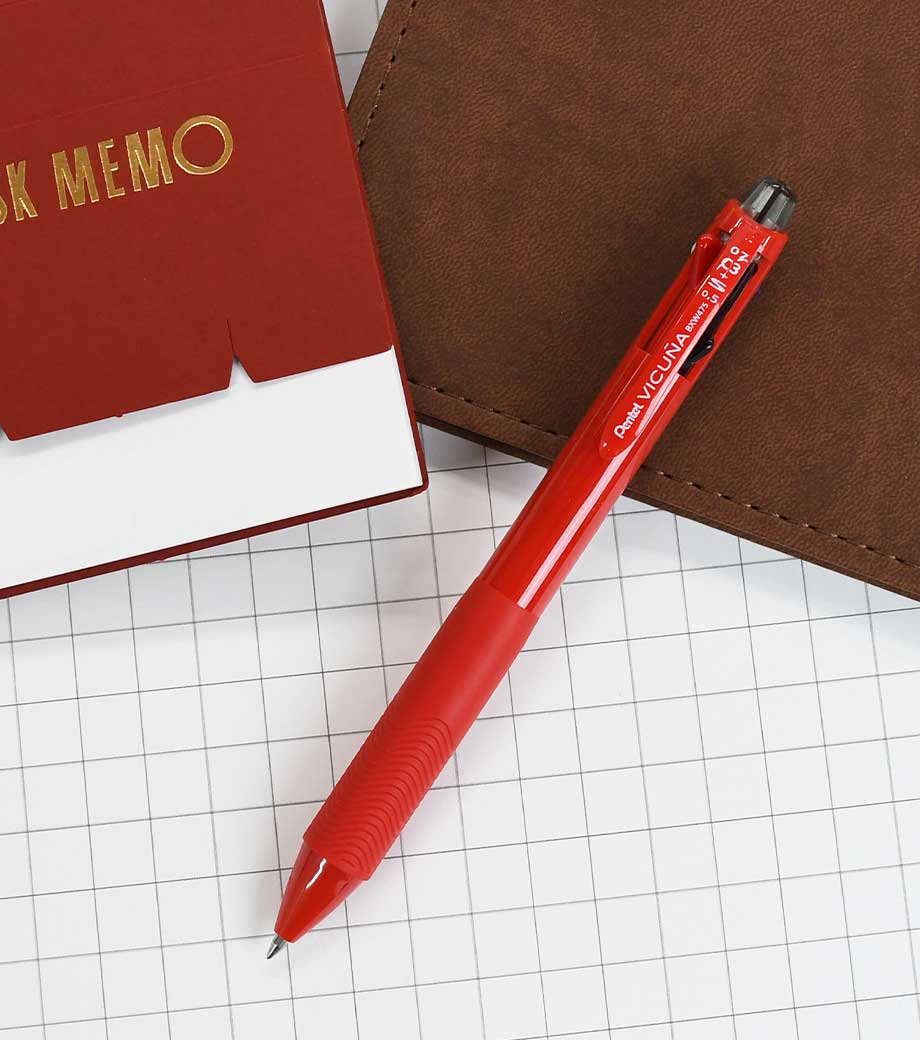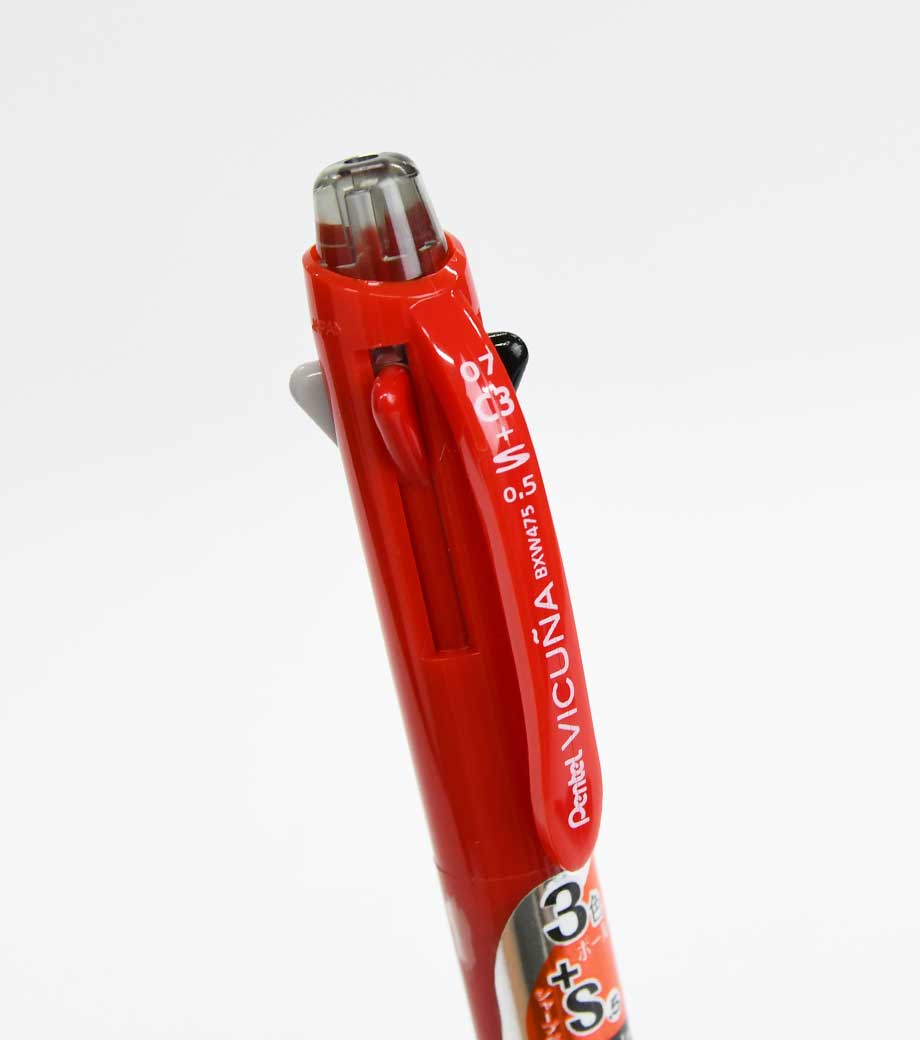 ぺんてる ビクーニャ 多機能ペン 0.5mmは、超低粘度の「ビクーニャインキ」を搭載。なめらかな筆記だけでなく、書きはじめのカスレも限りなくゼロにした抜群の書き味が魅力です。黒・赤・青の3色のインキとシャープペンが一つになっているので、ペンを持ち替える手間もなく使えます。ノートを取ったり手帳に予定を書き込んだりと、様々なシーンで活躍すること間違いなし!