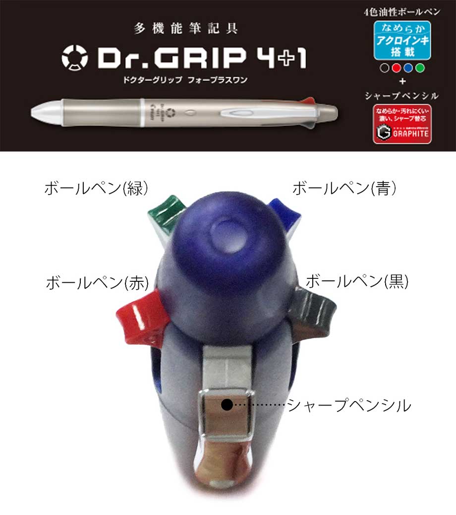 シャーペンと4色ボールペンが一本に