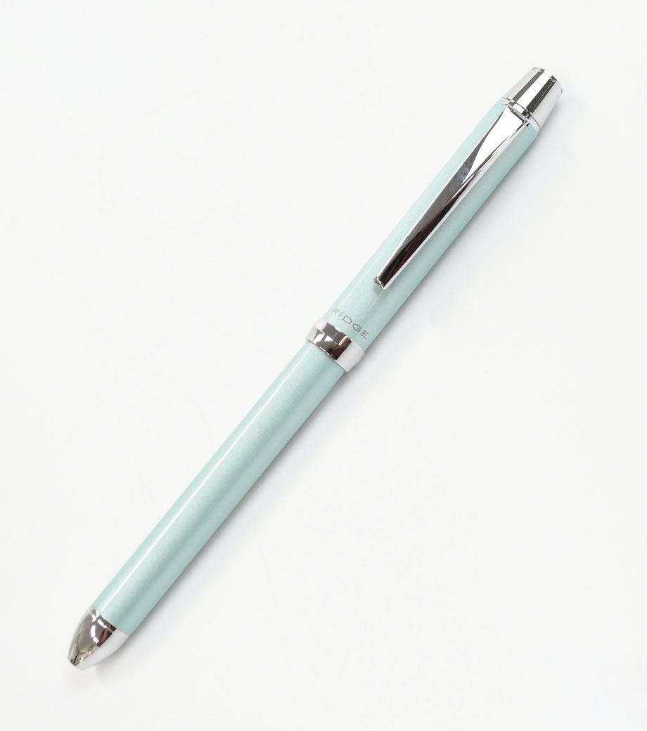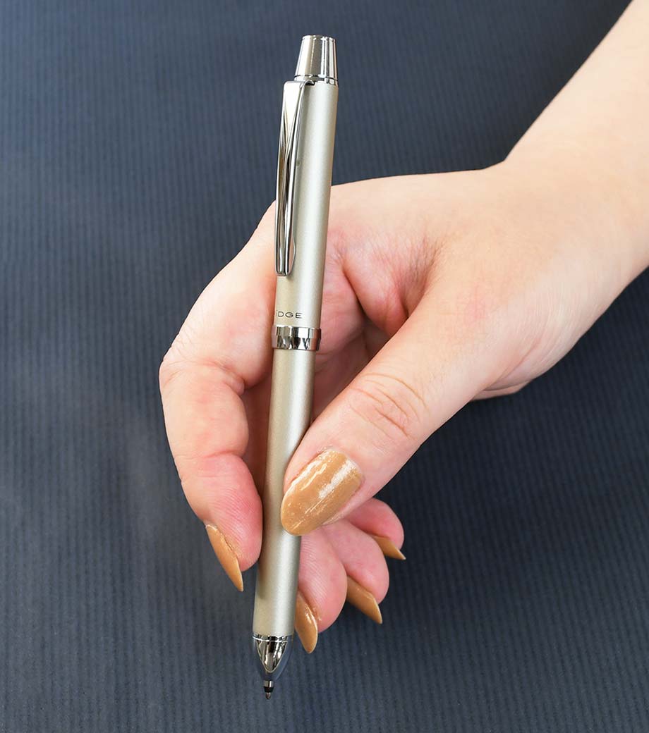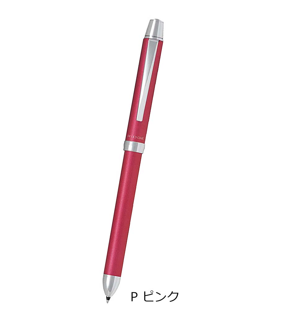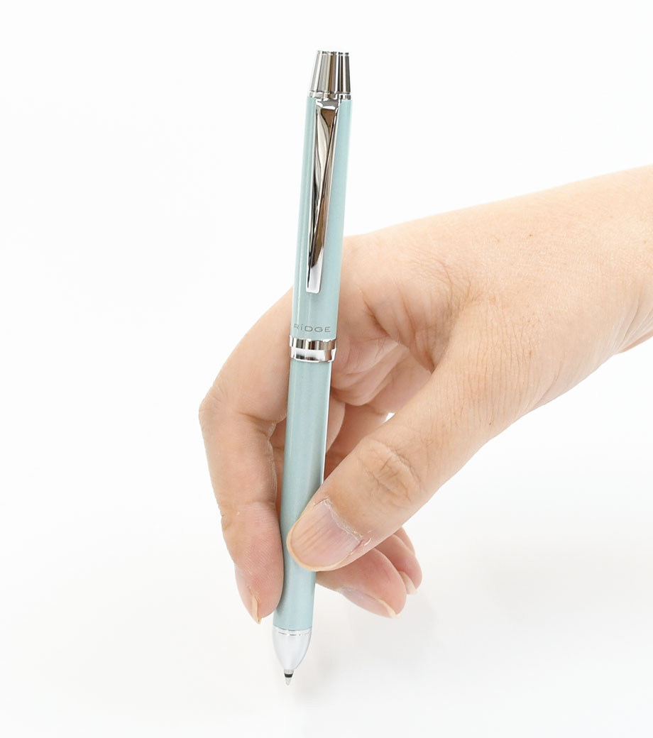 パイロット 2+1 RiDGE(リッジ)極細0.5mmは0.5mmの2色ボールペンにシャープペンをプラス。極細の0.5mmは細かい字を書くのに便利です。多機能ペンながら太さは最大径φ10.5mmと細身。ペンケースの中でかさばりません。女性の手でも握りやすい太さで程よく重量感もあり、ペンの自重によりそれほど力を加えなくても自然に書けます。