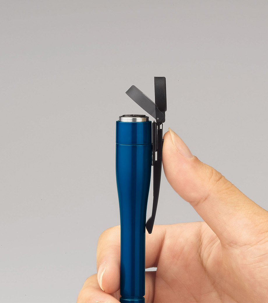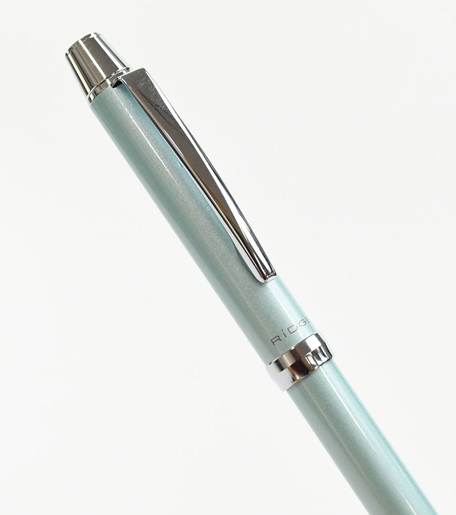 クリップ部分をまわす角度と止める位置で機能を切り替えます。ジュエリー感のあるパステルカラーは女性に人気。シンプルなデザインなので、プライベートだけでなくビジネスシーンでも活躍します。軸にロゴや社名を印刷可能。卒業記念品や美容系企業の周年記念にもおすすめです。