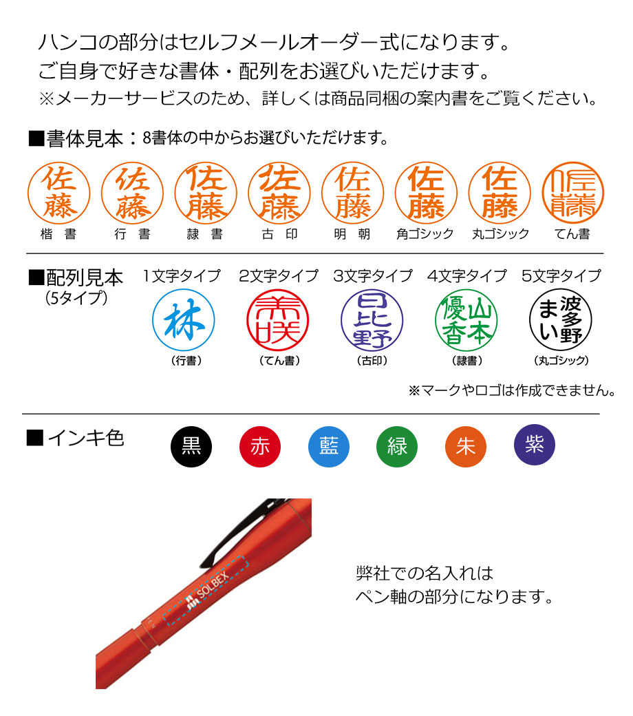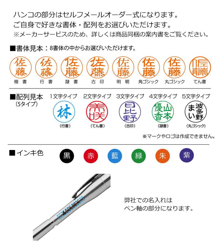 印面はセルフオーダー式。付属のはがき又はパソコン、携帯電話のシヤチハタ専用サイトにアクセスしてご依頼ください。