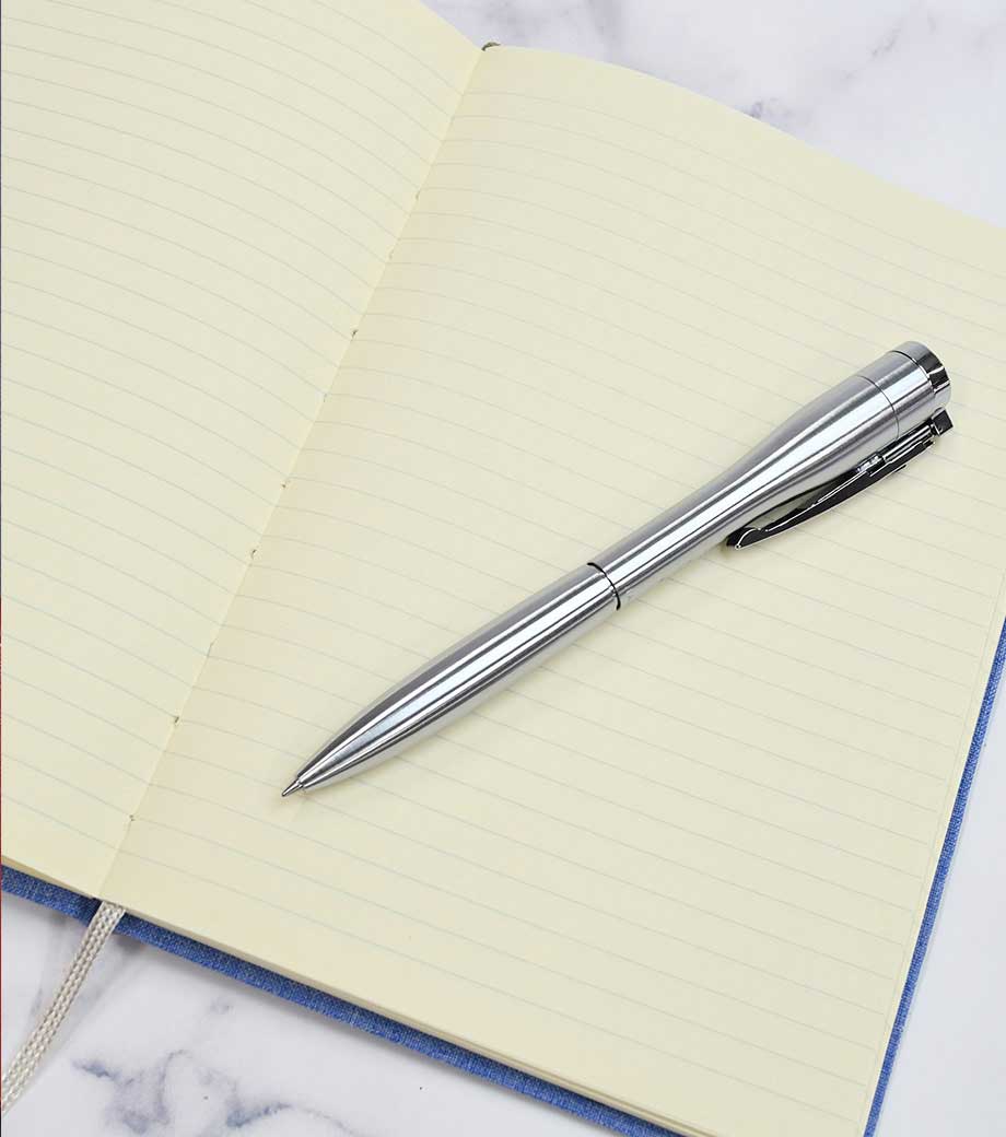 ペン本体とケースにそれぞれ名入れ印刷ができ、ペンはフルカラーインクジェット印刷も可能です。企業の周年記念品や展示会来場のプレゼント品など、販促用に人気があります。本体色も選べ、小ロットでの注文もお受けしております。