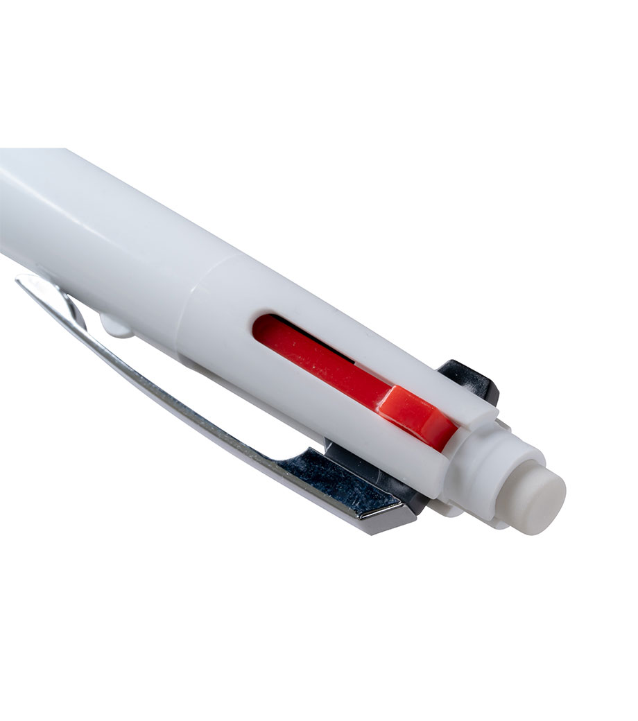 クリップ部分を押すとシャープペンが出てきます。低価格でばらまきノベルティに人気です。名入れが映える白軸に印刷をすると、宣伝効果も期待できます。1色・2色、フルカラーと目的や予算に合わせて印刷もお選びいただけます。
