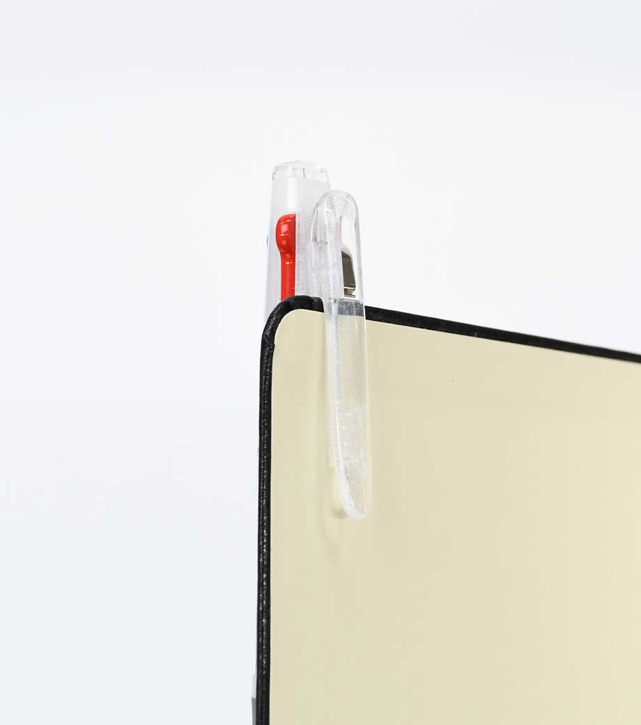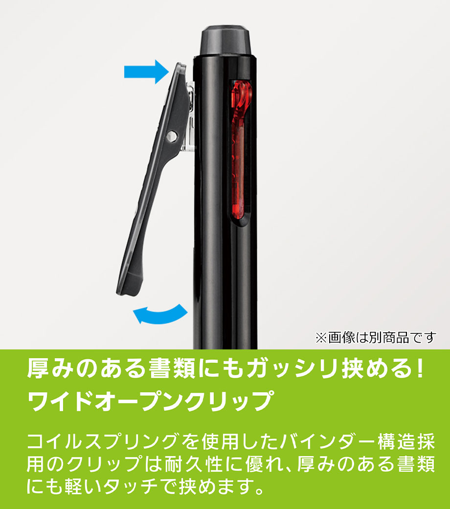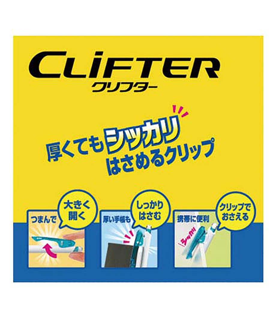 消える便利なフリクションボールペンのペン先は一般筆記に適した0.5mmの極細タイプで、細かい書き込みに優れています。独自に開発したリフトクリップは、厚いものをしっかり挟むことができ、10万回挟んでも壊れません!