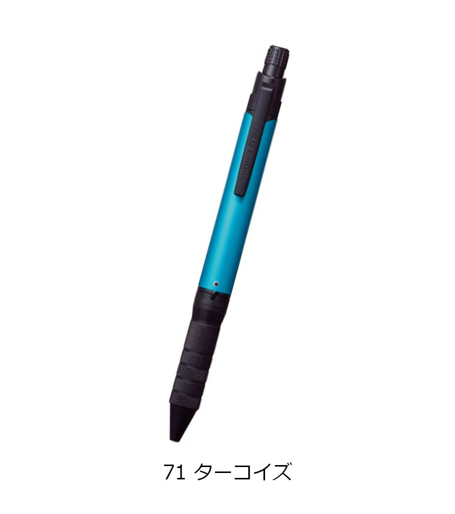 4アクションペンメタル(ケース付)は、クールな印象のメタルボディに、黒・赤・青のボールペンとシャープペンがドッキング。1本で4本の機能を備えた、便利なマルチペンです。ノックの部分の使いたいカラー名を自分に向けてノックすれば、使いたい色がでてくる構造です。
