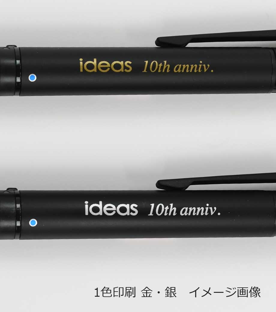 ペン本体とケースにそれぞれ名入れ印刷ができ、ペンはフルカラーインクジェット印刷も可能です。企業の周年記念品や展示会来場のプレゼント品など、販促用に人気があります。本体色も選べ、小ロットでの注文もお受けしております。